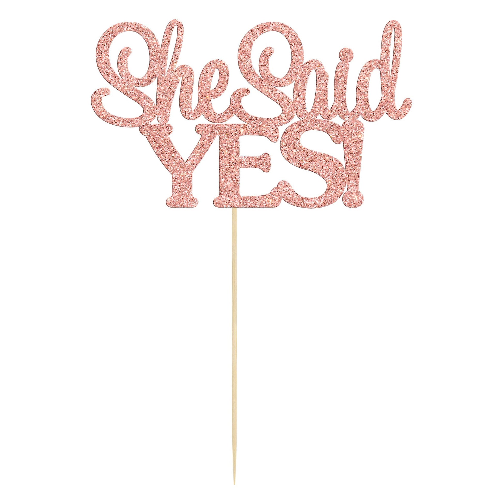 Gyufise Rose Gold Glitter 1Pc She Said Yes Cake Topper For Engagement Bridal Shower Wedding Shower Proposal Bachelorette Party D