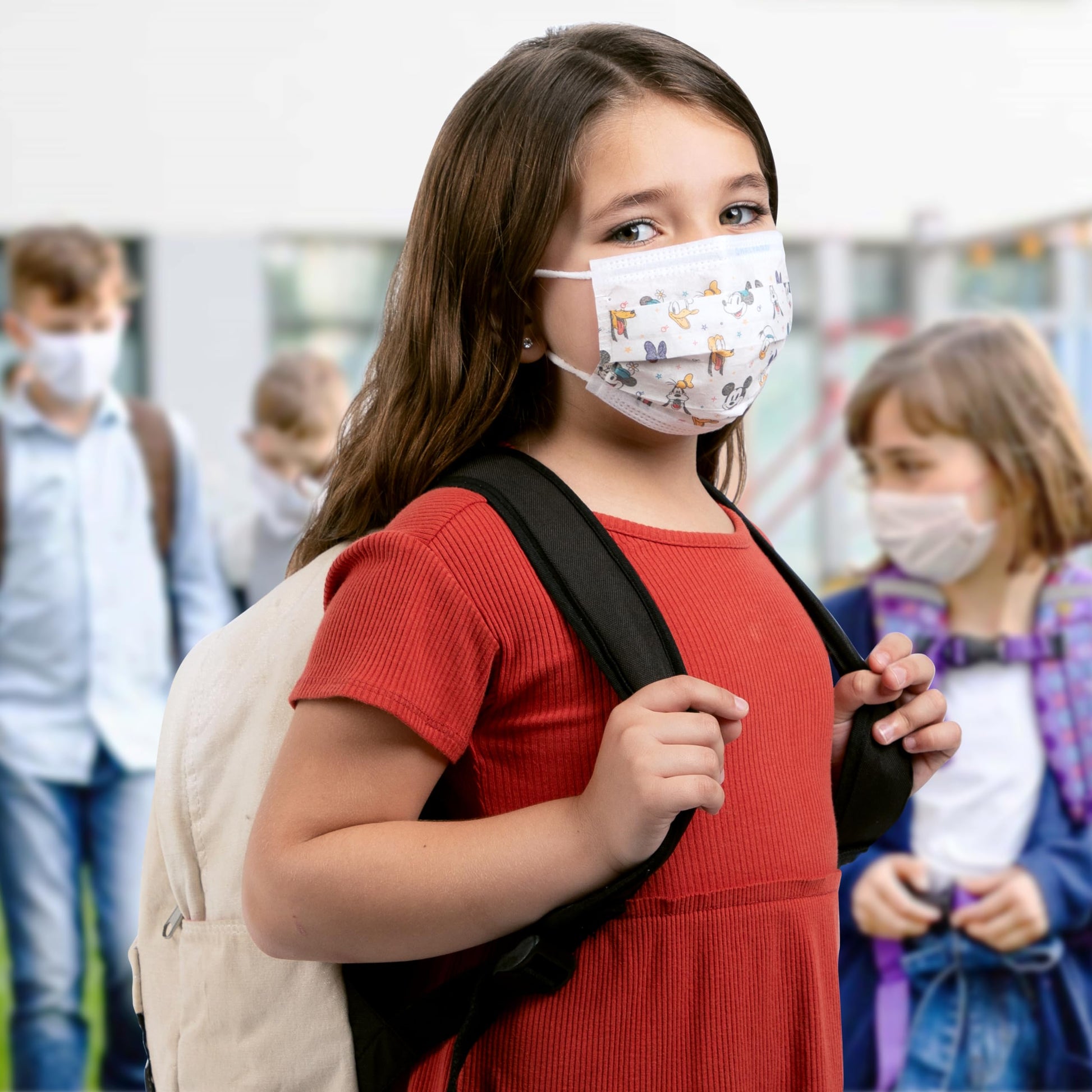 CHILD-SIZE FACE MASK WITH DISNEY CHARACTERS MAKES RESPIRATORY PROTECTION FUN! Kid-friendly Disney characters add a sense of fun that helps them feel more comfortable with the idea of wearing a face mask.