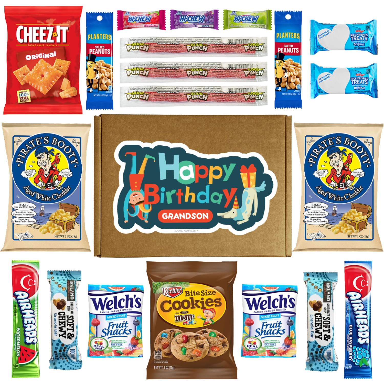 This Birthday Snack Box Makes It Possible For You To Send Someone A Nice Card-Type Message While Also Including Yummy Snacks Inside!&Nbsp;There Is A Box And Message For Everyone Anytime! What'S In The Box? The Most Important Thing About Giving People Goodies Is You Want To Give Them Their Favorite Snacks And Treats Or Treats That You Know Are Good And Loved By Many So They Can Enjoy Them Just Like Everyone Else.&Nbsp;Treats And Snacks That You Can Expect To Find In These Boxes Are:2 X Rice Krispies Treats2 X Airheads3 X Sour Punch Twists3 X Hi-Chew2 X Kirkland Signature Granola Bars2 X Planters Salted Peanuts2 X Welch'S Fruit Snacks2 X Pirates Booty1 X Cheez-It1 X Keebler Bite Sized Mini M&Amp;M Cookiesdisclaimer If We Happen To Run Out Of Or Are Unable To Get Our Hands On A Certain Product In This Birthday Snack Kit, We Will Have To Substitute It With Another Item. How We Do This Is We Find An Item That Is Very Similar To The One We Are Substituting And Make Sure That It Is Of Equal Or Higher Value In Price So That It Is A Fair Trade And You Will Still Be Getting Your Moneys Worth. Thank You For Your Understanding And If You Have Any Questions Please Let Us Know. 100% Satisfaction Policy!