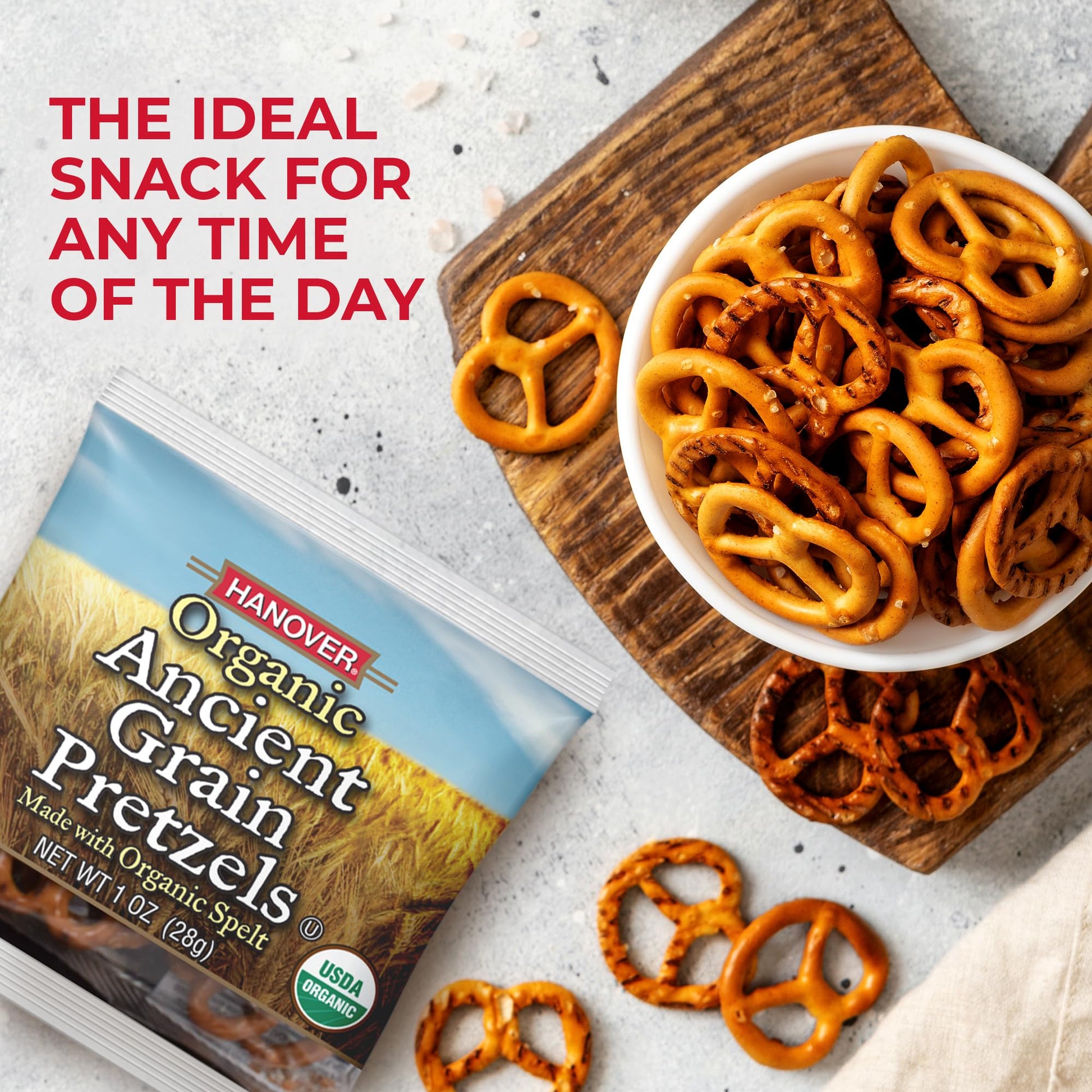 - Q: How can I incorporate these pretzels into my diet? A: Hanover Organic Ancient Grain Spelt Sea Salt Pretzels make a versatile snack option. You can enjoy them on their own, pack them in lunchboxes, use them for charcuterie boards, or serve them during picnics and movie nights for a savory treat.