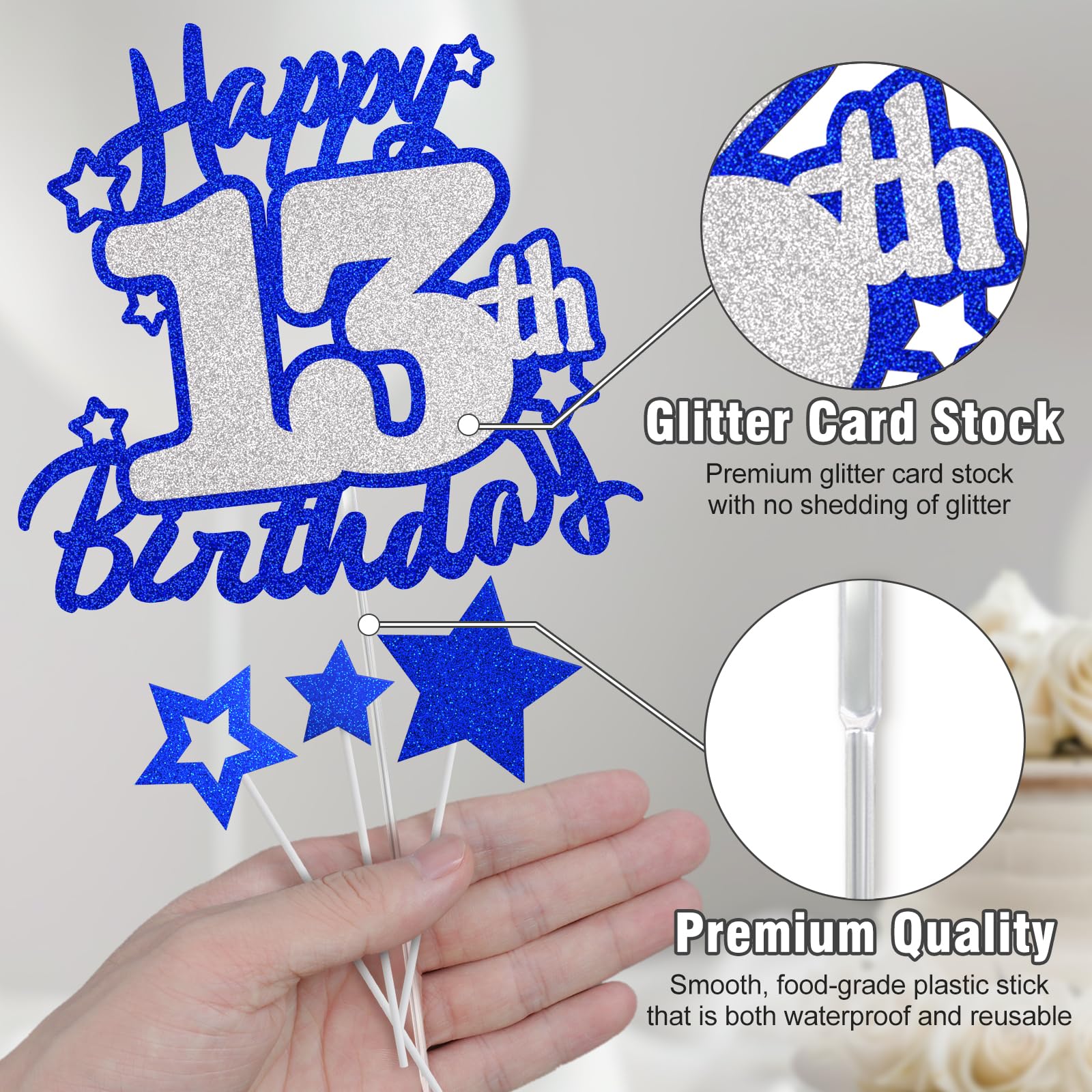 ;Celebrate Your Special Year With Our Birthday Cake Topper. This Exquisite Piece Is More Than Just A Decoration; Its A Symbol Of Love, Joy, And Unforgettable Memories. Crafted With A Stunning Glitter Finish, This Topper Brings An Elegant Touch To Your Celebration, Making Your Cake The Highlight Of The Event. ;Ideal For Happy Birthday Theme Party, Anniversary Celebrating Theme Party Cake Decorations Supplies. Attention This Cake Topper Features Glitter On One Side And Is White On The Other. It'S Meant For Decoration Only, So Please Do Not Place It In The Oven Or Microwave. Specifications Material:&Nbsp; - Glitter Card Stock + Plastic Stick - Adhesive Dots Package Includes: - 1 Pc Happy 13Th Birthday Cake Topper - 1 Pc Food-Grade Clear Plastic Stick - 6 Pcs Glitter Stars - 6 Pcs White Plastic Sticks - 10 Pcs Adhesive Dots
