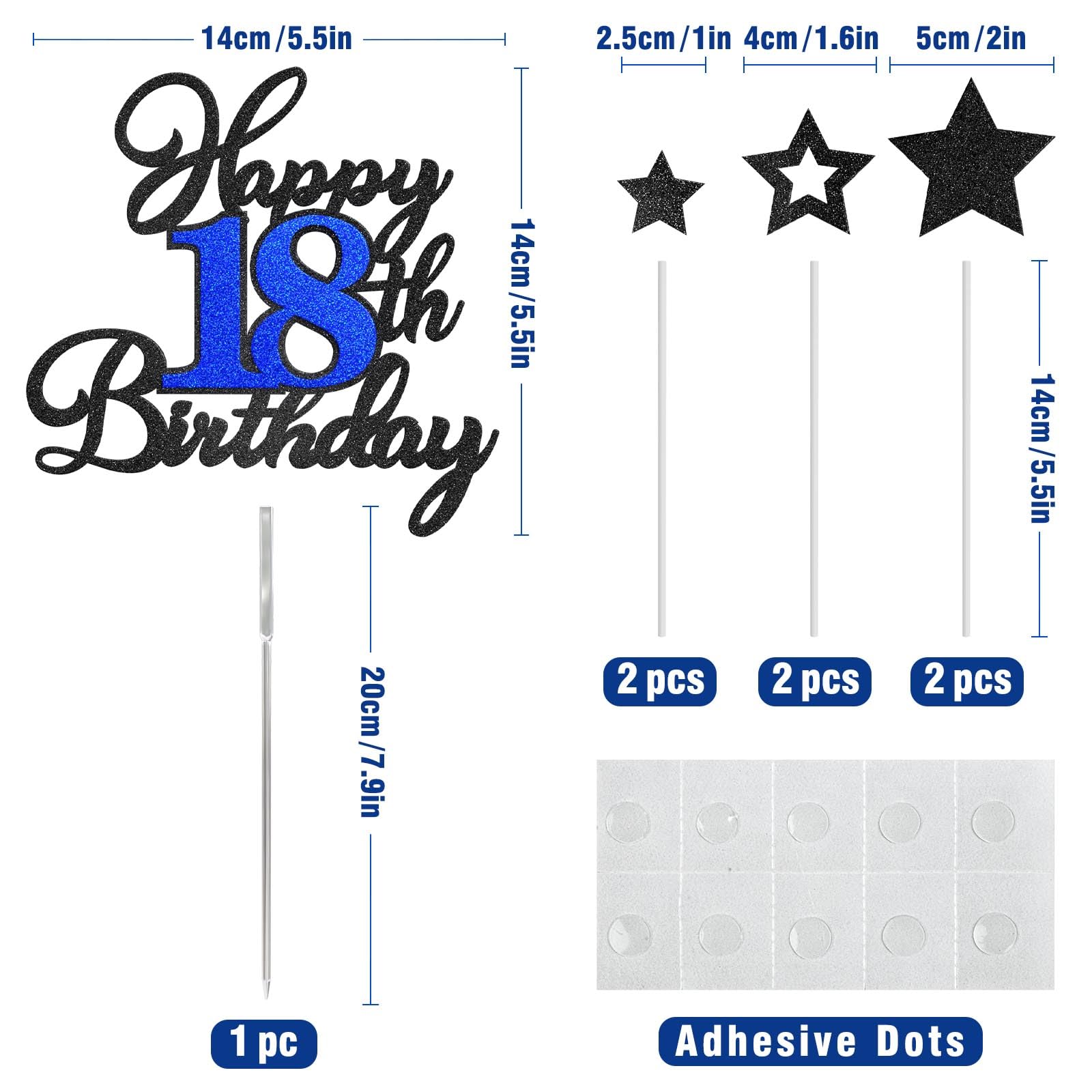 Happy 18Th Birthday Cake Topper For Happy 18Th Birthday Theme Party Cake Decorations Supplies. Ideal For Happy 18 Birthday Theme Party,&Nbsp;18Th&Nbsp;Anniversary Theme Party Cake Decorations Supplies. Attention: This Cake Topper Features Glitter On One Side And Is White On The Other. It'S Meant For Decoration Only, So Please Do Not Place It In The Oven Or Microwave. Specifications: Material:&Nbsp; - Glitter Card Stock + Plastic Stick - Adhesive Dots Package Includes: - 1 Pc Happy 18Th Birthday Cake Topper - 1 Pc Food-Grade Clear Plastic Stick - 6 Pcs Black Glitter Stars - 6 Pcs White Plastic Sticks - 10 Pcs Adhesive Dots