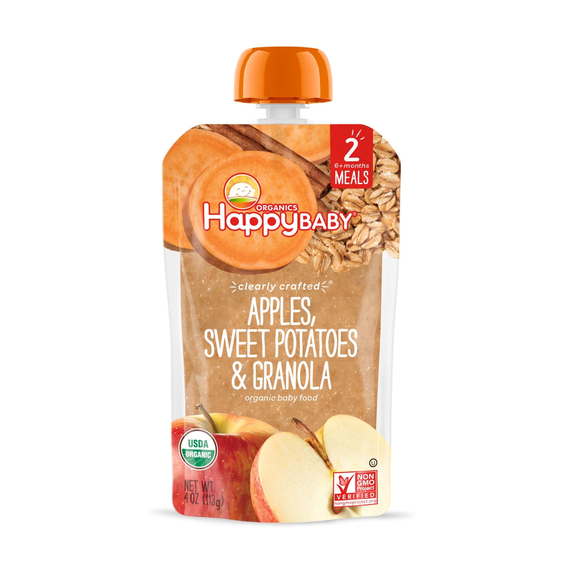 Happy Baby Organic Clearly Crafted, Apples Sweet Potatoes And Granola, 4 Ounce Pouch (Pack Of 16)