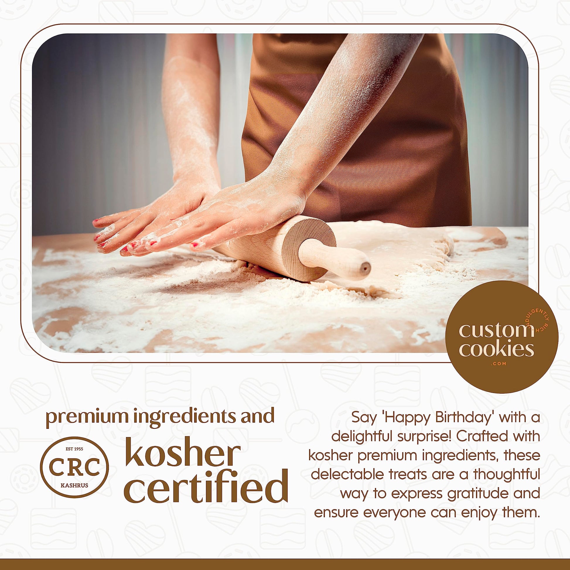 Q: What makes these cookies a great birthday gift?A: These Happy Birthday Gift Basket Custom Sugar Cookies are handmade from scratch, decorated with vibrant designs, and individually wrapped, making them a delightful and unique gift for anyone celebrating their birthday.