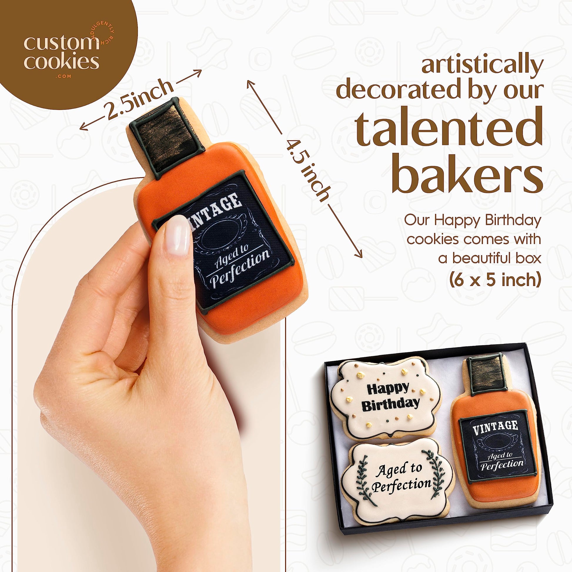 Nothing says Happy Birthday like a cookies gift box from Custom Cookies! Birthday bashes are always a blast, but some birthdays deserve a one-of-a-kind special celebration. Our Aged to perfection themed gourmet sugar cookies are the perfect way to treat Him, your Sons, Dad, Brother, Husband, Grandfather, Uncle, Nephew, Relative, Teacher, Boss, or Coworker.<br><br>ATTENTION: Please remember to Check the box labeled This Is A Gift in your cart at checkout. You can even write a personalized message to include :) You wouldnt want your awesome recipient to receive such an amazing gift and not know who treated them, after all!<br><br>PRODUCT FEATURES:<br><br>3 Gourmet Sugar Cookies<br>Individually Wrapped<br>Kosher<br>Dairy Free<br>**<br>Baked with Love in the USA<br>Satisfaction Guarantee<br>Box Dimensions: 6 x 5 x 1 <br><br>** PLEASE NOTE: Made in a facility that processes Peanuts and Tree Nuts<br><br>HANDMADE FROM SCRATCH, WITH LOVE<br><br>Our gourmet sugar cookies are handmade and freshly baked, full of delicious flavor and the perfect crispy texture to sink your teeth into. Made from scratch and hand-decorated with edible icing, using only the finest ingredients. The designs and colors are bright, fun, festive, and realistic!<br><br>LESS TIME SHOPPING, MORE TIME SMILING<br><br>With Custom Cookies efficient online delivery (with or without Prime), you can send a special and unique birthday gift without the hassle of shopping, wrapping, and delivering it to the birthday boy yourself. Spend less time planning while still pulling off the perfect gift. Spend more time watching your favorite shows, playing more games, spending more time with family, and picking out the next birthday gift on your list!<br><br>A VIRTUAL BIRTHDAY HUG<br><br>If you cant be there to hug them in person then do the next
