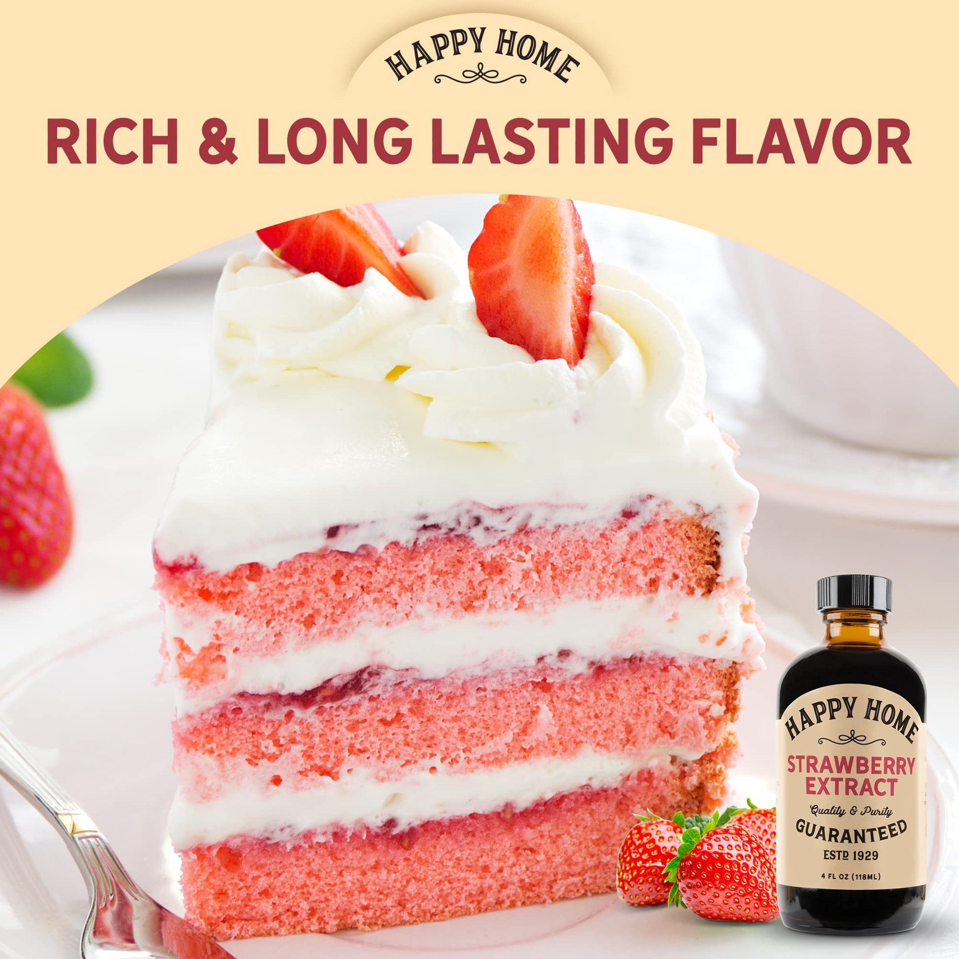 Q: Is this product made in the USA?A: Yes, Happy Home Natural Strawberry Flavor is proudly made in the USA, crafted with care to ensure high-quality flavoring for your kitchen.