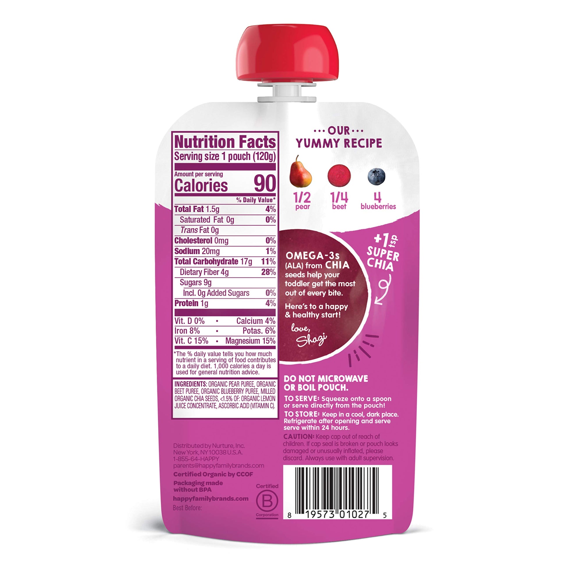 Q: What age is this baby food suitable for?A: Happy Baby Blueberry, Pear, Beet is specifically designed for babies and toddlers, making it a perfect choice for children in their early stages of development.