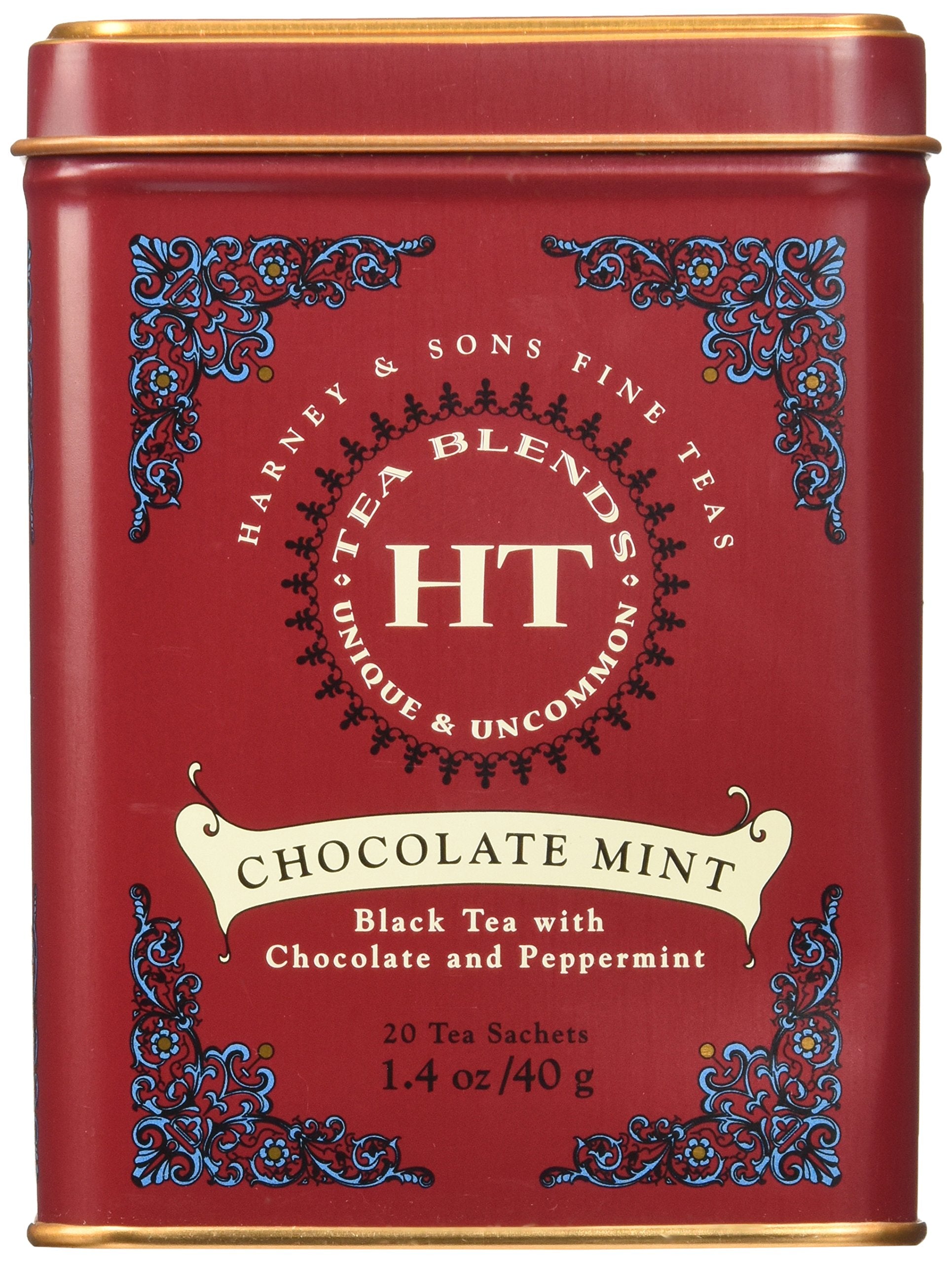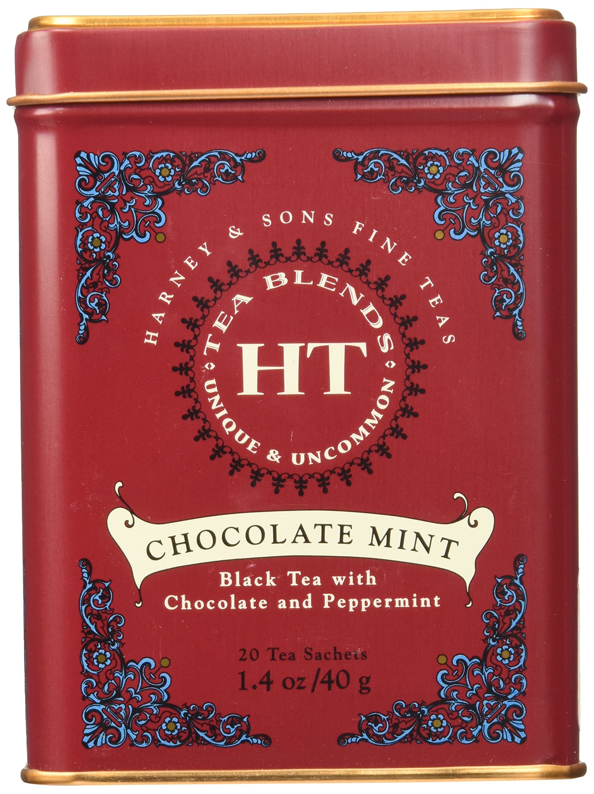 Q: What are the main ingredients in Harney and Sons Chocolate Mint Black Tea?A: Harney and Sons Chocolate Mint Black Tea is made from high-quality black tea, chocolate flavor, vanilla flavor, and peppermint leaves. It also contains natural flavors, providing a delightful taste experience.