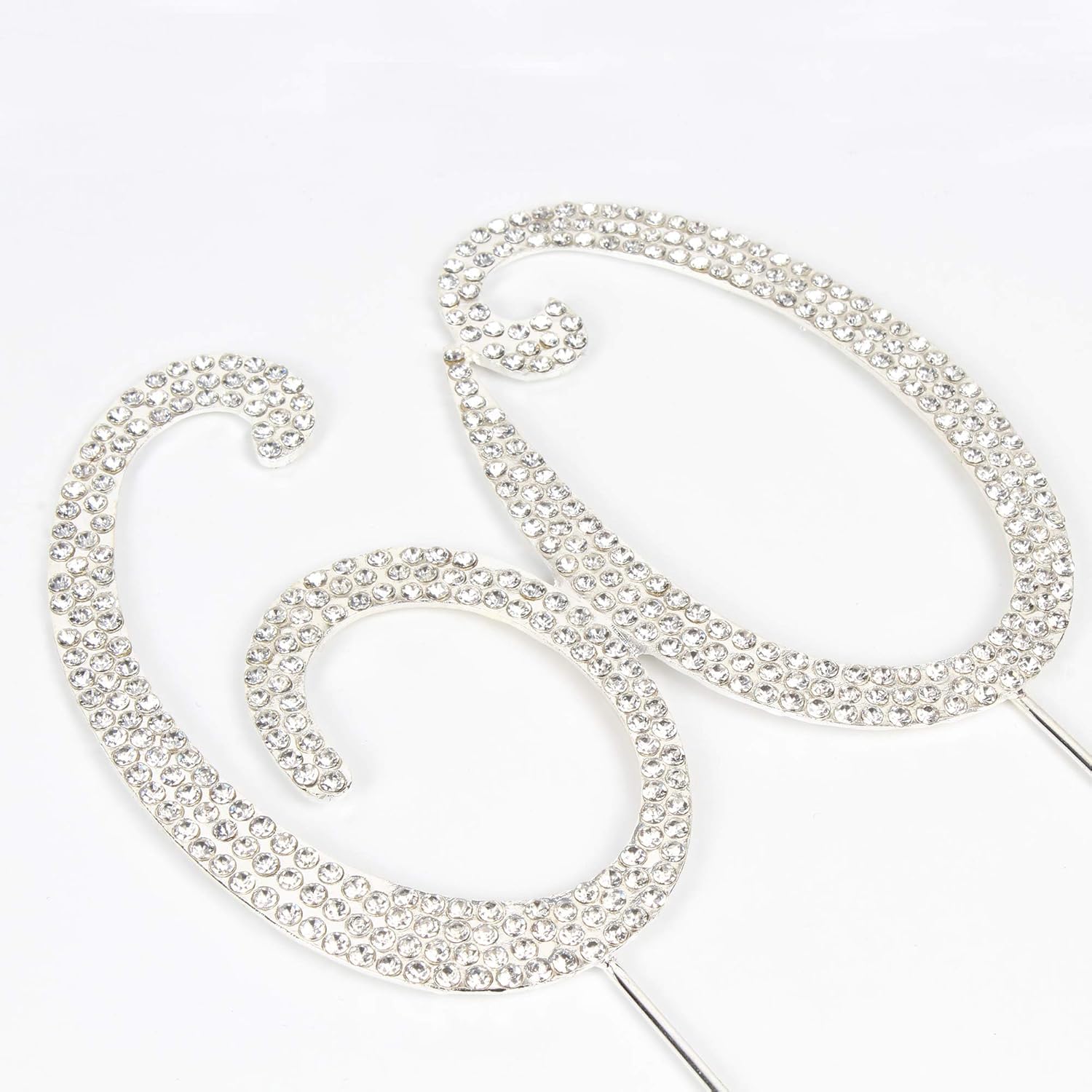 Q: What material is the Hatcher Lee Bling Crystal Rhinestone 60 Birthday Cake Topper made from?A: The cake topper is made from a quality gold metal alloy backing, providing durability and an elegant finish, along with rhinestones that add a touch of sparkle.