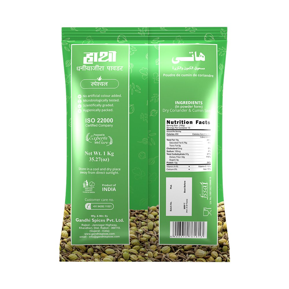 Hathi presents this coriander cumin powder which is made of dry coriander and cumin seeds and best before 8 months from the manufacturing date.