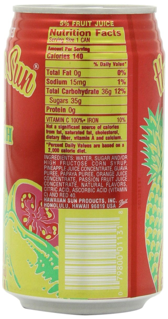Fruit Juice Drink From Concentrate. With Other Natural Flavor. Taste Of Hawaiian. Non Carbonated. Www.Hawaiiansunproducts.Com.