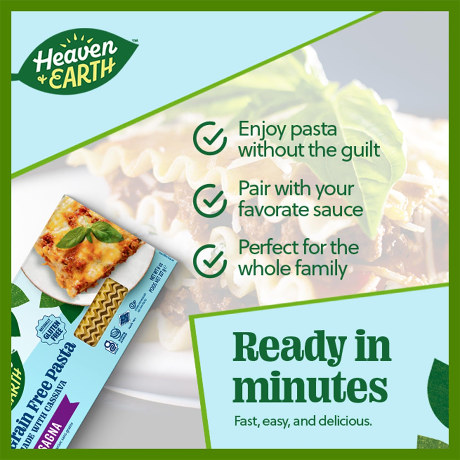 View compareHeaven & Earth Grain Free Pasta, Cassava Lasagna Pasta, 8oz (2 Pack) | Paleo Pasta | Vegan | Certified Gluten Free | Kosher for