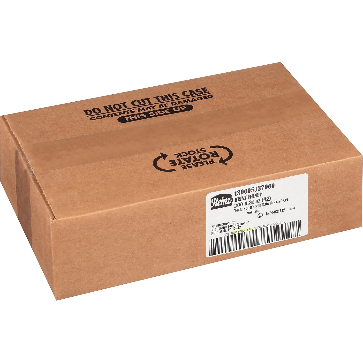- Q: What is the packaging size of Heinz Honey single serve packets? A: Each Heinz Honey packet contains 9 grams (0.3 oz) of honey, and they are packaged in a case of 200 packets, making them perfect for restaurants, catering, or personal use.