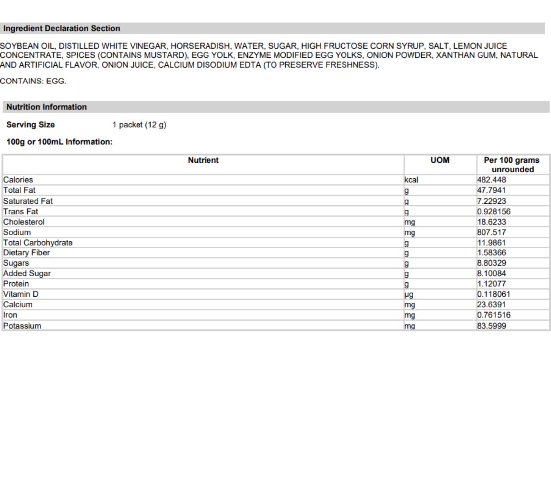Q: Are the Heinz Horseradish packets suitable for individual servings?A: Yes, the portion control packets are designed for individual servings, making them perfect for takeout, catering, or personal use, ensuring you get just the right amount every time.