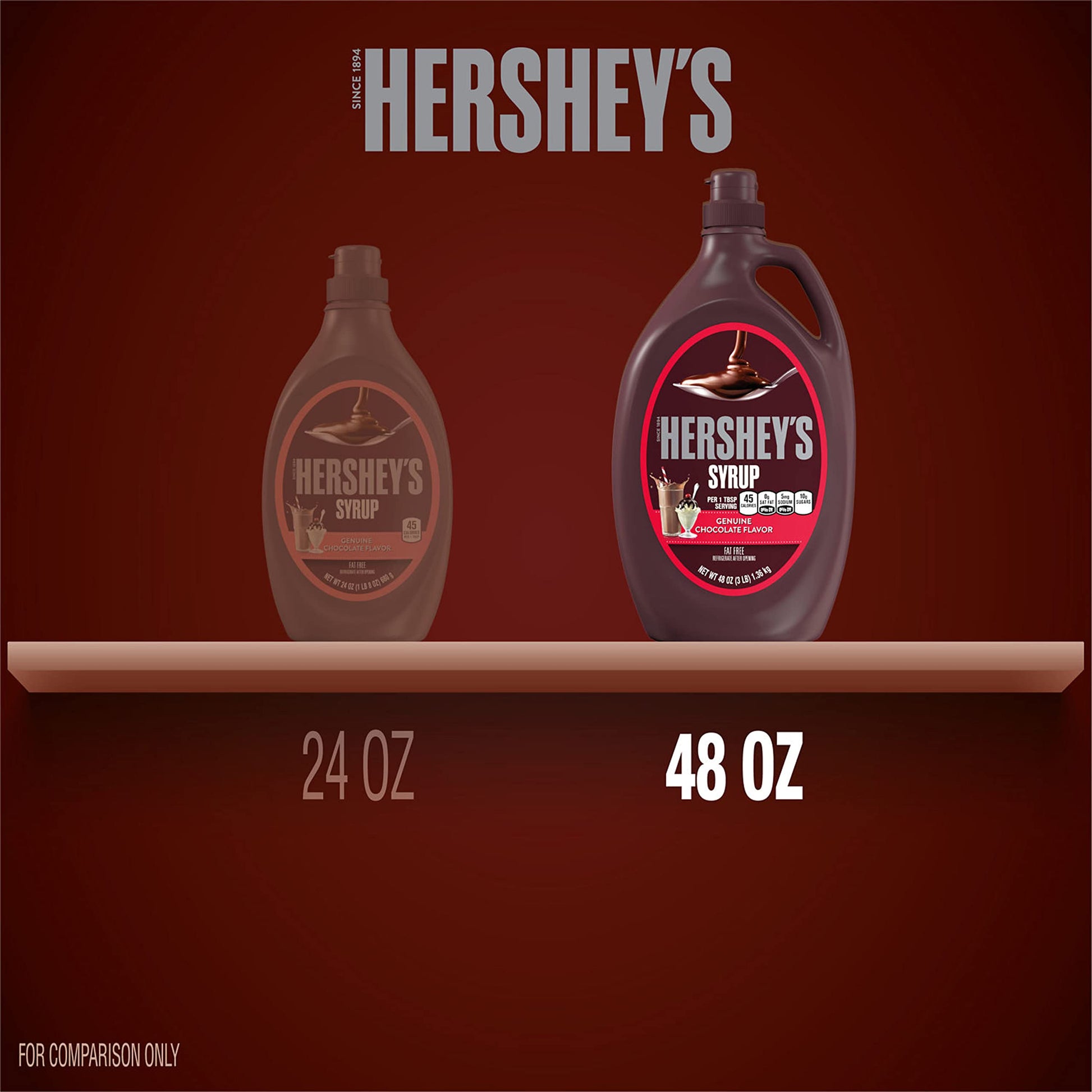 HERSHEY S chocolate syrup is full of the genuine chocolate flavor you know and love packaged in a classic bottle. Enjoy the sweet and delicious taste of chocolate syrup on everything from cakes to cookies. It is the perfect syrup to add to your milk, hot cocoa and coffee. Try drizzling it over your brownies and cakes or use it to make chocolate floats and sundaes. No matter what you re making or who is at your gathering, pop open the lid and squeeze, swirl, dot or drizzle the syrup on top of some of your favorite drinks and desserts.