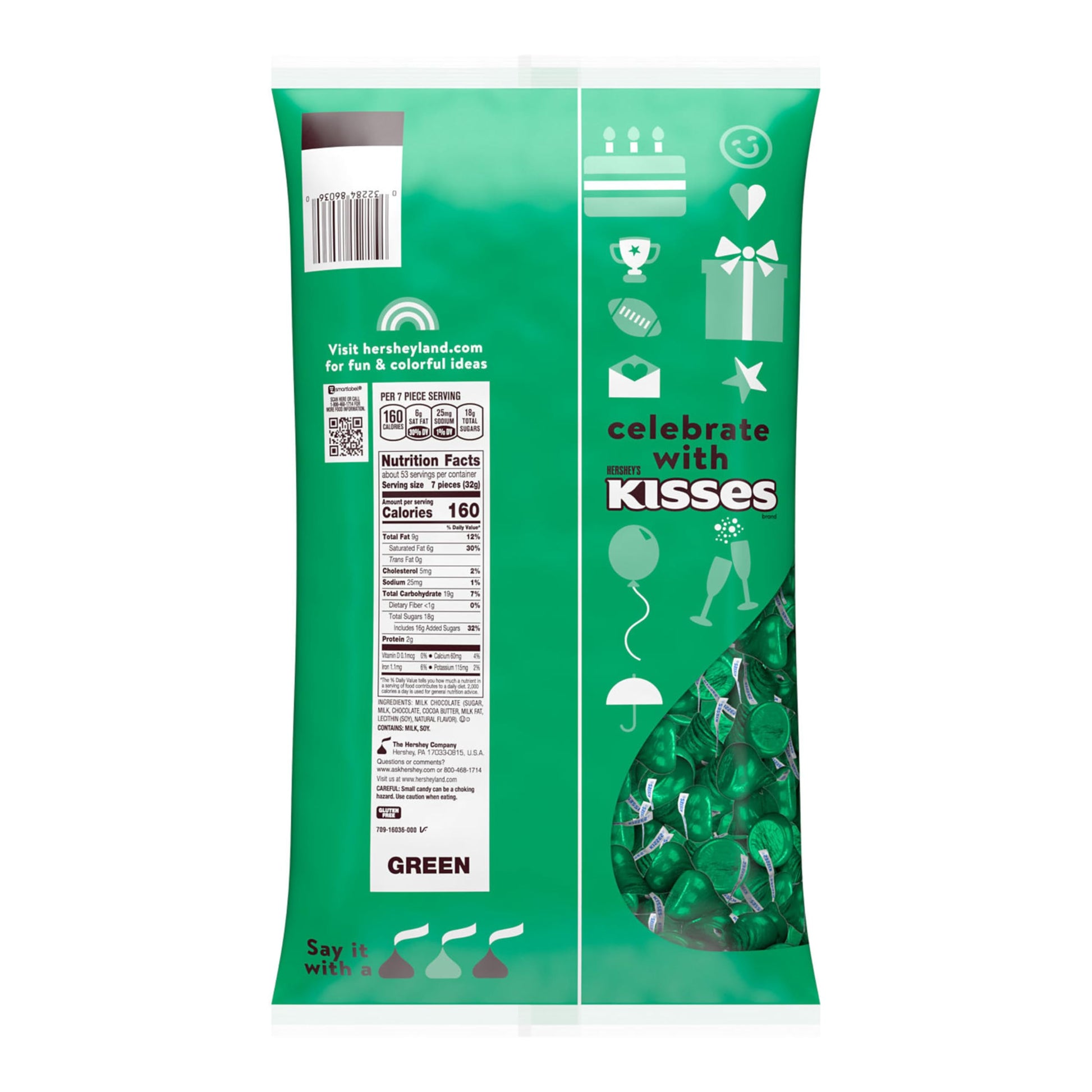 Q: Can HERSHEY'S KISSES be used for party favors?A: Absolutely! HERSHEY'S KISSES wrapped in stunning green foils make excellent party favors and can add a colorful touch to any themed snack display.
