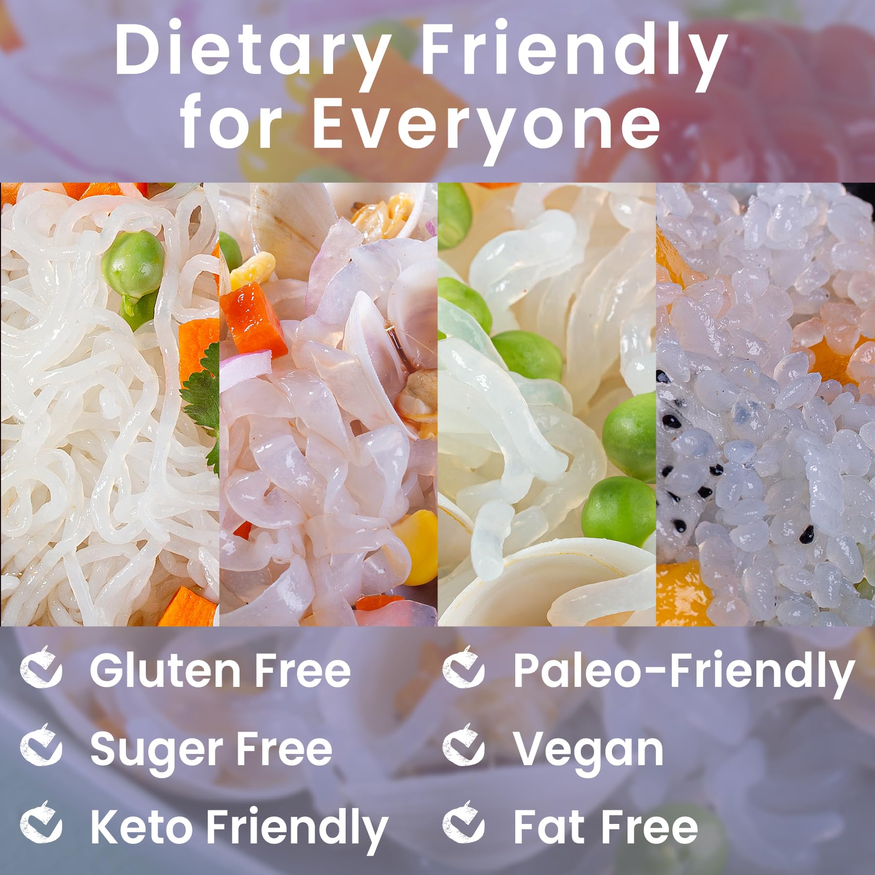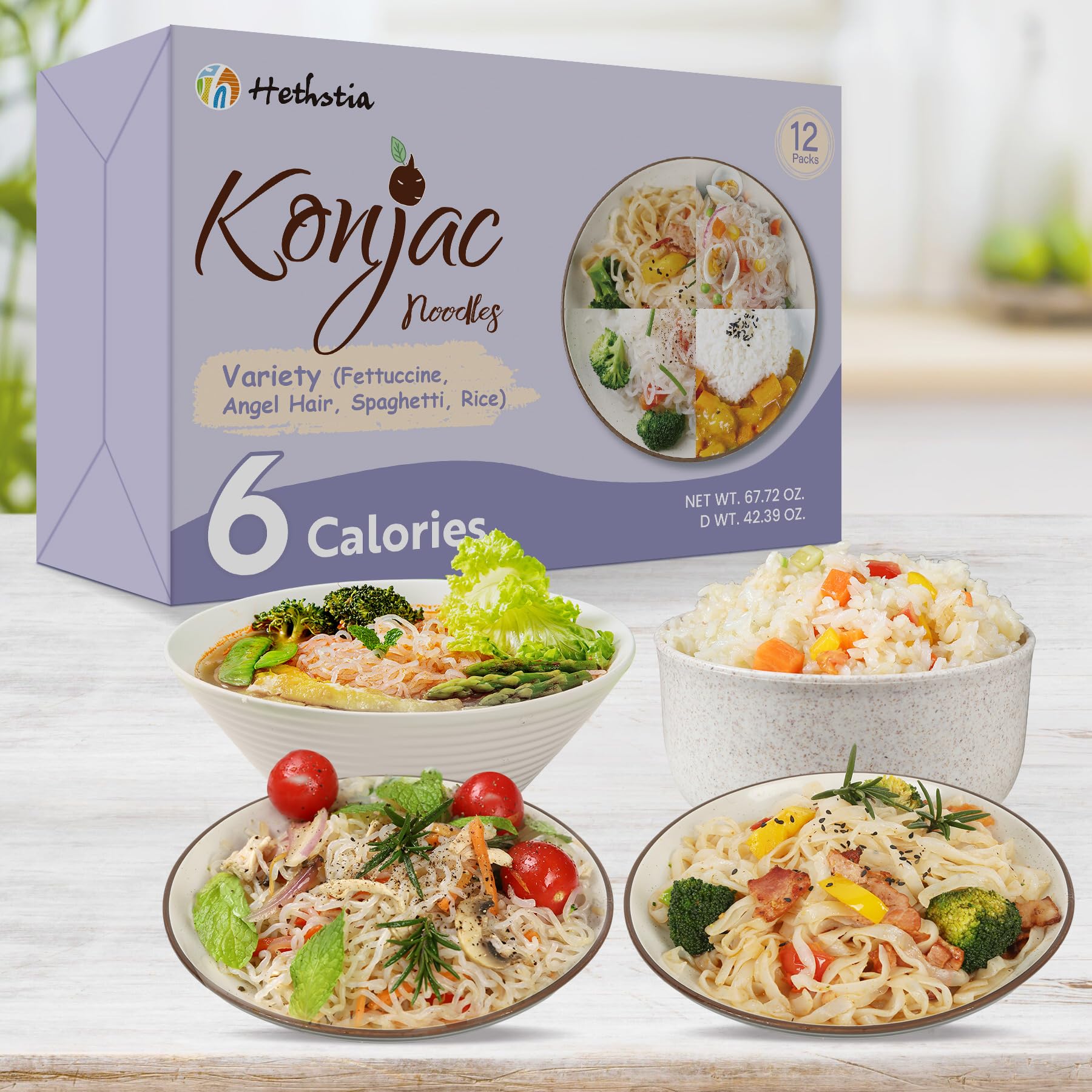 Experience The Ultimate In Healthy Eating With The Hethstia Konjac Noodles Variety Pack! This 12-Pack Includes An Assortment Of Spaghetti, Fettuccine, Angel Hair, And Rice Shapes, Providing A Versatile And Delicious Alternative To Traditional Pasta And Rice. Made From Konjac Yam, Our Shirataki Noodles Are Low In Calories, Low Glycemic, And Free From Gluten And Sugar, Making Them Suitable For A Wide Range Of Diets Including Keto, Paleo, And Vegan. Hethstia Konjac Noodles Are Pre-Cooked And Ready To Eat, Offering A Convenient Solution For Quick And Nutritious Meals. Whether You'Re Preparing A Classic Spaghetti Dish, A Creamy Fettuccine, A Delicate Angel Hair Pasta, Or A Hearty Rice Bowl, Our Variety Pack Has You Covered. Why Choose Hethstia Konjac Noodles Variety Pack Variety & Versatility: Four Different Shapes For Diverse Meal Options. Low Calorie & Low Gi: Supports Weight Management And Stable Blood Sugar. Keto & Paleo-Friendly: Perfect For Maintaining Specific Dietary Goals. Vegan & Gluten-Free: Fits Various Dietary Preferences. Sugar-Free: Ideal For Those Monitoring Sugar Intake. Ready To Eat: Convenient And Easy Meal Preparation. How To Prepare: 1.Open A Pack Of Hethstia Konjac Noodles Or Rice. 2.Rinse Thoroughly Under Cold Water. 3.Heat In A Pan For 2-3 Minutes Or Microwave For 1 Minute. 4.Add Your Favorite Sauce Or Ingredients And Enjoy! This Variety Pack Is Also A Great Gift For Health-Conscious Individuals. Delight Your Friends And Family With A Nutritious And Delicious Alternative To Traditional Pasta And Rice, Perfect For Supporting Their Healthy Diet Goals.