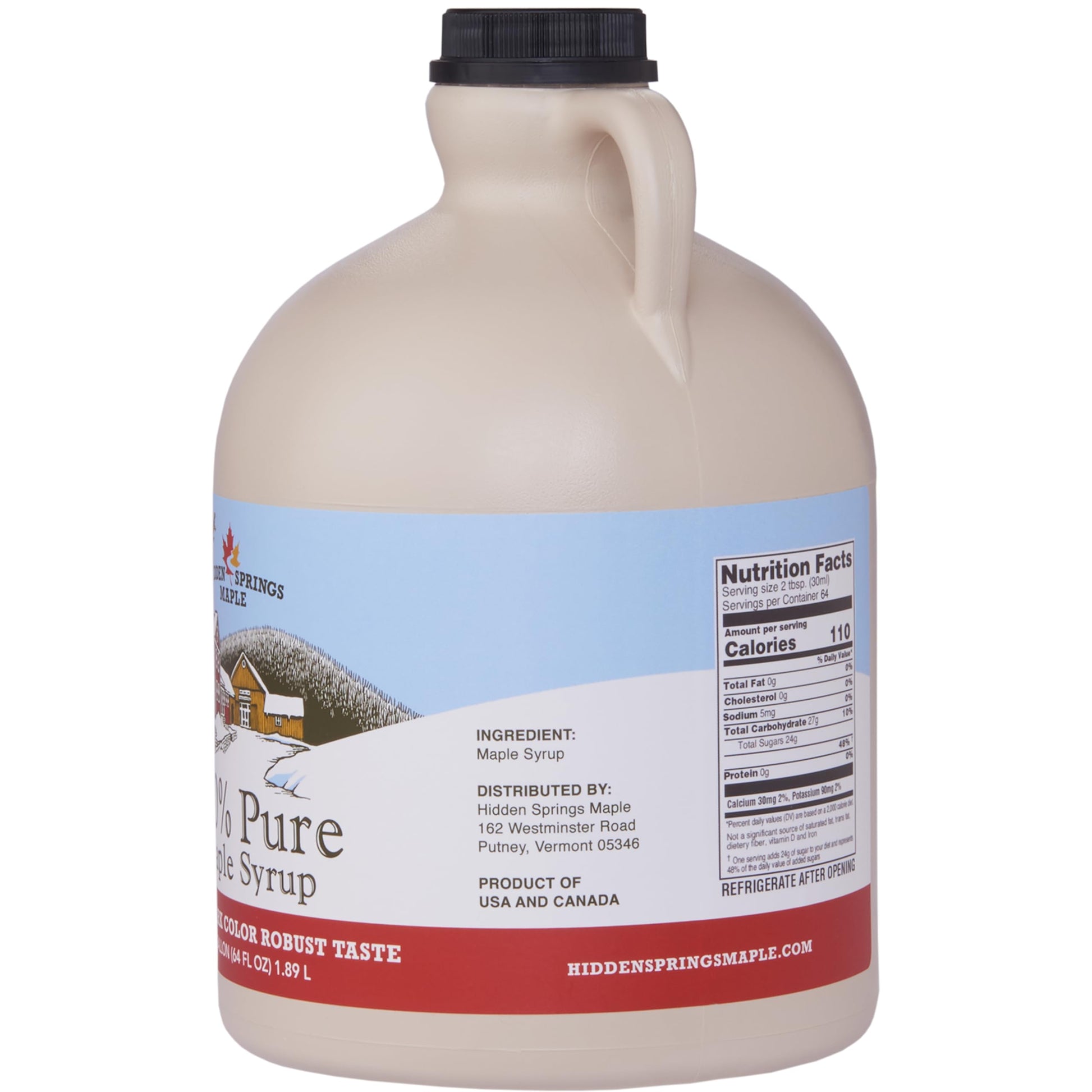 Q: What size is the Hidden Springs Maple Dark Syrup jug?A: The Hidden Springs Maple Dark Syrup is available in a 64 Fl Oz (Pack of 1) size, providing a generous amount for your culinary needs.