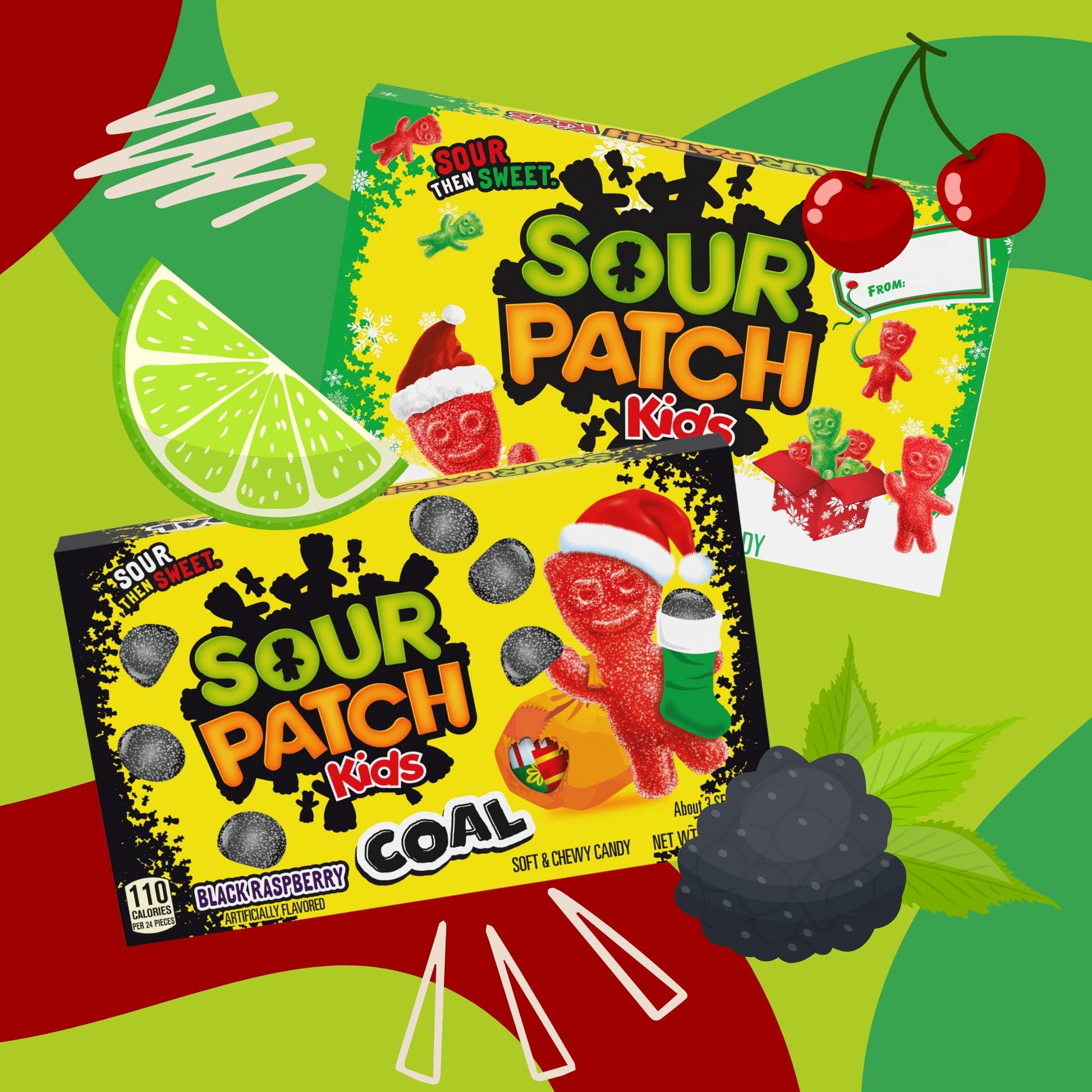 Sour Patch Kids Holiday Sour Patch Kids Coal And Sour Patch Kids Christmas Edition Are Sugary, Chewy, And A Super Sour Treat! This Pack Includes 1 - 3.1 Ounce Theatre Box Of Coal Shaped Sour Patch Kids And 1 - 3.1 Ounce Theatre Box Of Christmas Edition Sour Patch Kids, As Well As A Candy Inspired Sticker! Sweetzo Purchases Only From Licensed Manufacturers. We Combine Complimentary Items For The Perfect Gift Giving. We Repackage All Items In Our Custom Packaging To Ensure Arrival In Perfect Snacking Condition. Whether You'Re Giving Or Receiving This Season, Purchase Confidently From Sweetzo! Pack Of 2 Means There Is Plenty Of Sour Candy To Go Around! Give Some To Your Friends Or Family, Use Them As Fun Party Favors, Or Just Keep Them For Yourself... Don'T Worry We Won'T Judge! Great For Movie Nights And Road Trips, With Winter Break Approaching These Snacks Are Perfect For Traveling This Holiday Season Or Cuddling Up On The Couch And Watching A Movie! They Also Make The Perfect Stocking Stuffer And Gift Filler, With These Sour Patch Kids, Holiday Fun Never Has To End! Flavors The Flavor Of The Coal Sour Patch Kids Are Black Raspberry Flavored And The Flavors Of The Christmas Edition Sour Patch Kids Are Lime And Cherry Flavored!