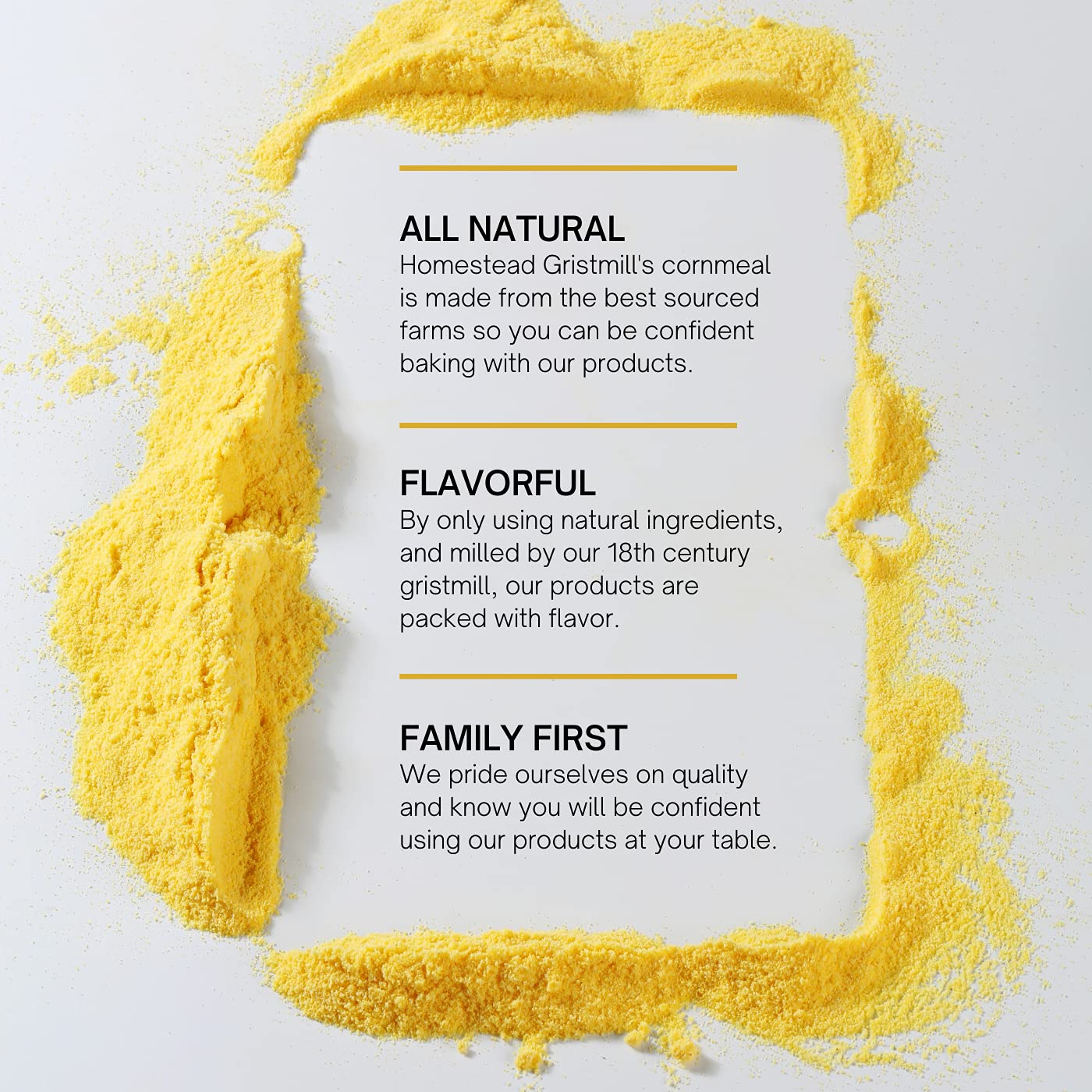 ?Have You Used Corn Meal Flour In The Past But Were Disappointed In The Grind Or Flavor??Wouldnt It Be Great Knowing Exactly Where Your Cornmeal Was Made?If So, Then Youre Going To Love What We Have To Offer At Homestead Gristmill!When You Choose Homestead Gristmill, Youll Enjoy The Wholesome Taste Of Fresh-Ground Whole Grains And Mixes. When Grinding Our Grains, We Use A Single-Step Process Using Natural Granite Stones. Why Is This Important? This Process Helps Preserve The Nutritional Value, Taste, And Texture Of The Grain. You Can Also Rest Easy Knowing That All The Grains We Use Are Grown Without Chemical Pesticides And Fertilizers And Made With One Of The Oldest Running Gristmill'S In The Usa!Product Features & Benefits:?? Whole Grain Cornmeal Made In Central Texas?? No Preservatives, Chemicals, Or Bleaching ?? This Yellow Cornmeal Is Finely Ground?? Great For Breads, Muffins, Frying, And More?? Unmatched Taste And Texture?? Long 8-Month Shelf Life (2 Years Frozen)Why Choose Homestead Gristmill?Were A Family Owned Small Business That Restored An 18Th-Century Gristmill In Central Texas Back In 2003. Since Then, Weve Been Committed To Milling And Mixing Wholesome, Whole Wheat Products For Our Own Children And Community. Now Were Introducing Our Full Line Of Products To The Rest Of The World. When You Put Your Trust In Us, You Know Youre Getting A Product Made From The Best Local Ingredients That We Can Source.