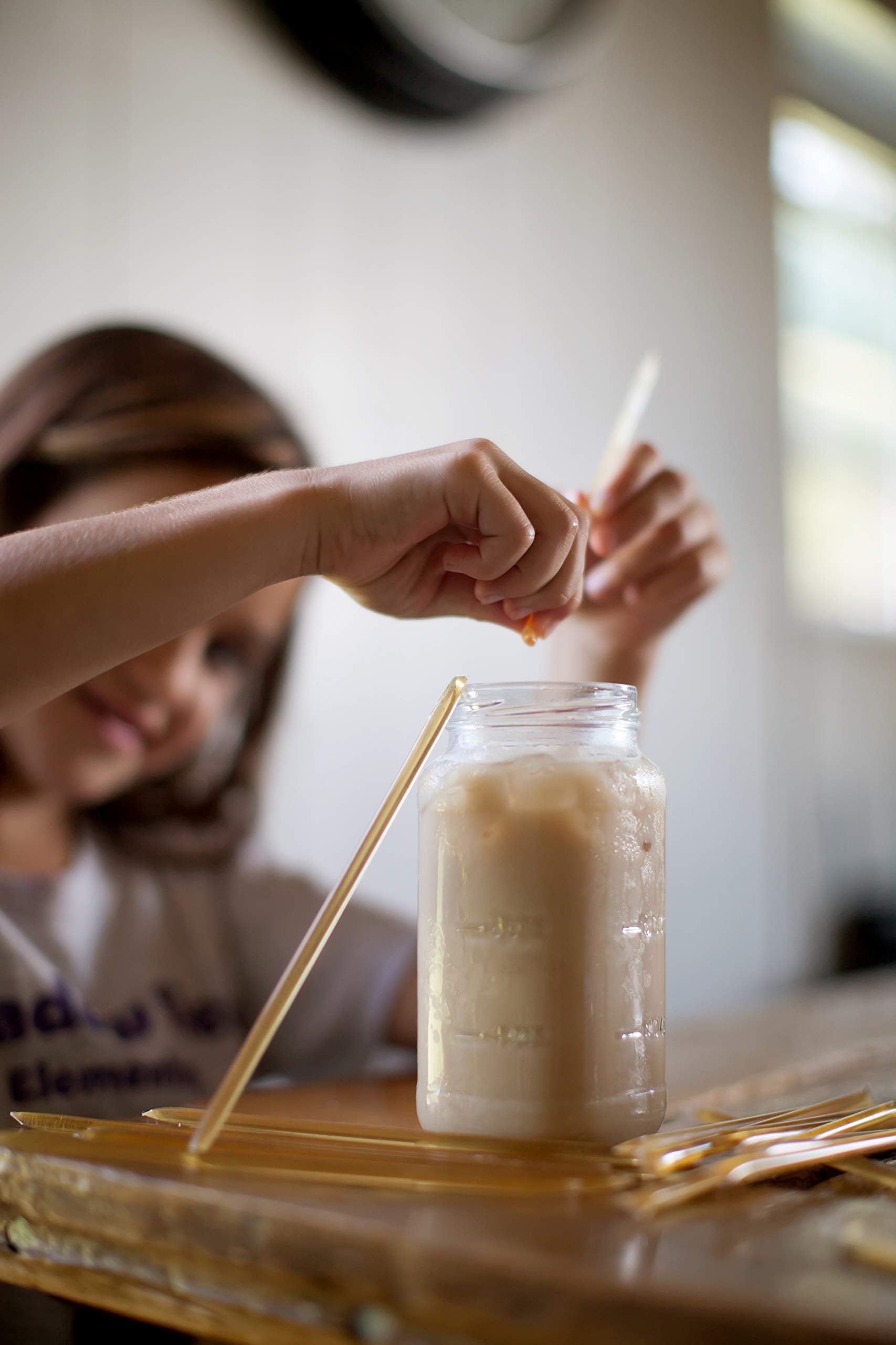 Q: How much honey is in each straw?A: Each 7-inch plastic straw contains 5 grams of raw unfiltered Clover honey, providing a perfect single-serving size for sweetening beverages or enjoying as a snack.