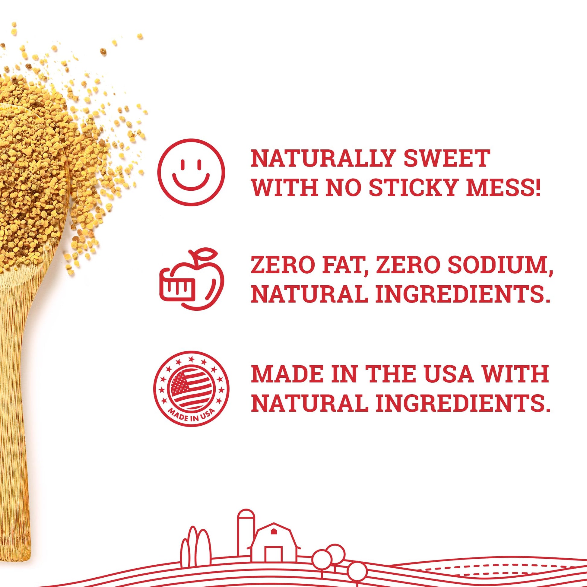 Granulated Honey Crystals have the same great taste as liquid honey with a crunchy, dissolvable texture. It dissolves well in liquid, making it an ideal addition to vinaigrettes, marinades, and brines. Try using Honey Crystals in baking and candy-making as a replacement for white sugar. Store in a cool, dry place. We do not recommend refrigeration or freezing of the powder. Packaged in a facility that processes dairy, soy, peanuts, and wheat products.
