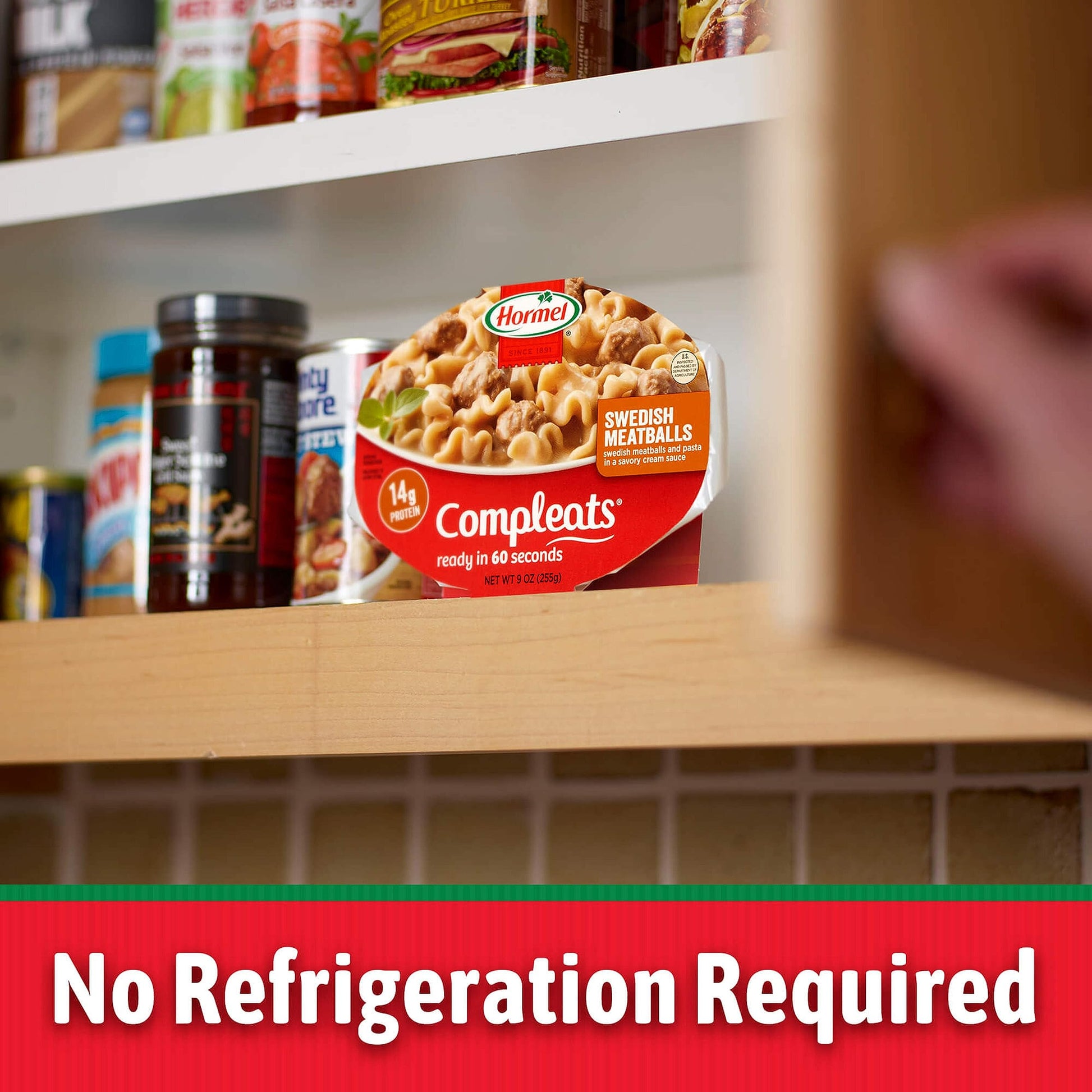 - Q: Can HORMEL COMPLEATS Swedish Meatballs be stored in the pantry? A: Absolutely! HORMEL COMPLEATS trays are shelf stable, allowing you to stock your pantry for a quick and tasty meal anytime without the need for refrigeration.