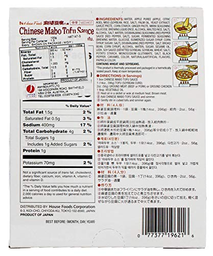 House Foods Chinese Mabo Tofu Sauce Medium Hot, 5.29 Oz Pack Of 10