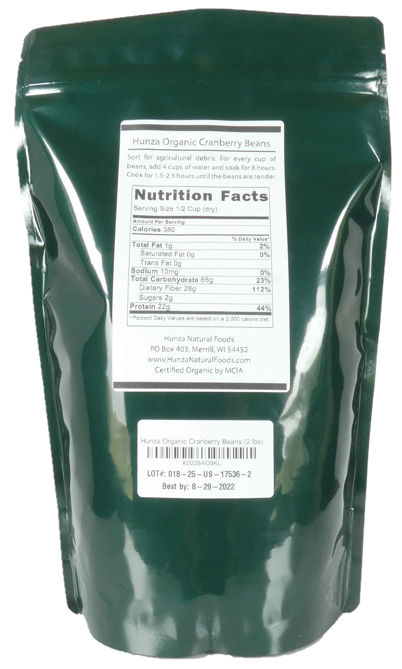 Organic Cranberry Beans (2 Lbs) Deliciously Sweet And Delicate In Taste, These Beautiful Organic Cranberry Beans Are A Popular Staple Of Italian Cuisine. Widely Known As ''Borlotti Beans , This Legume Is Memorable For Its Red Specks And Meaty, Chestnut Flavor. These Cranberry Beans Are Certified Usda Organic. They Are Also Non-Gmo And Do Not Have Any Additives Or Preservatives. Organic Cranberry Beans Are An Excellent Source Of Iron, Magnesium, Fiber, Protein, And Potassium. A Favorite In Italian, Turkish, And Greek Cuisine, The Bean'S Sweet Taste And Mild Flavor Is Perfect For Stews, Cold Bean Salads, Soups, Rice Dishes, And Pasta. Comes Packaged In A High-Quality Green Stand-Up Pouch For Convenience And Durability. Save Money When Ordering These Beans In Larger Quantities By Purchasing 5 Lbs Or More! Interested In Trying These Delicious Organic Cranberry Beans? Click ''Add To Cart'' And Soon You Will Be Able To Savor Healthy Legumes!