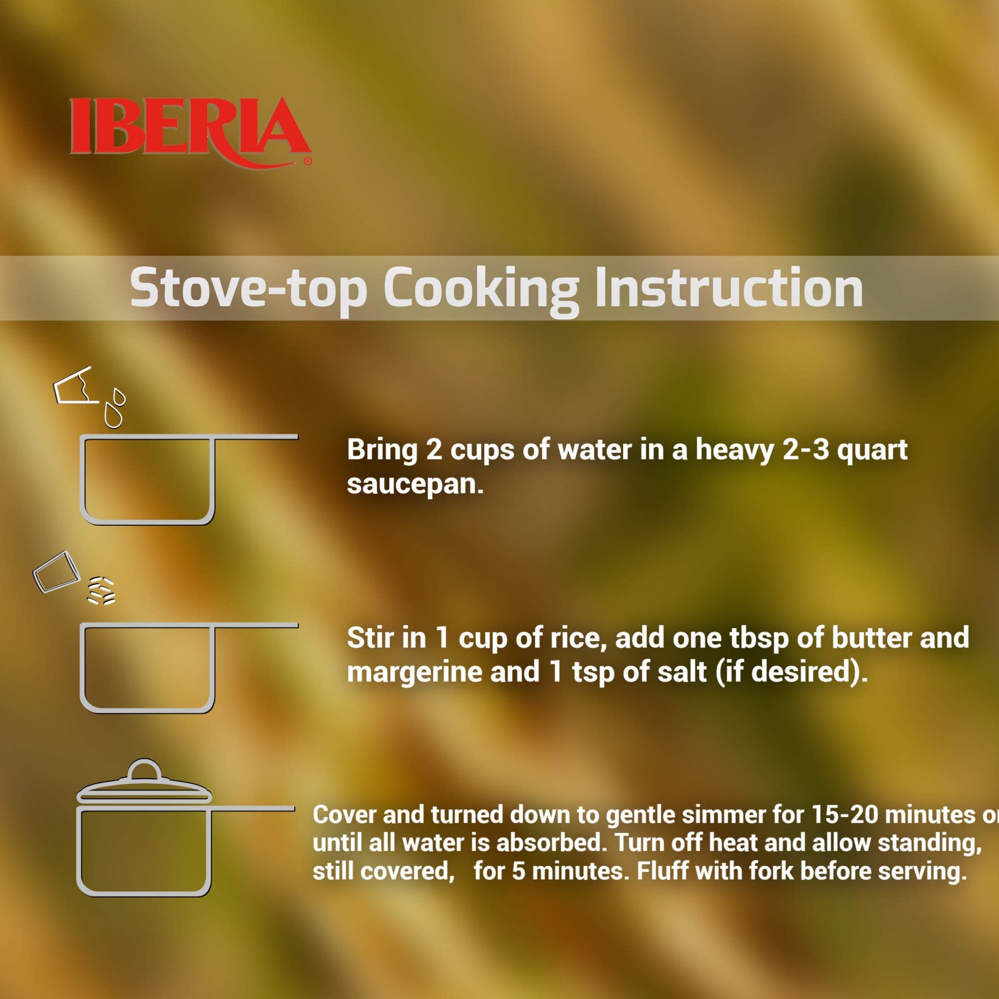 - Q: What are the cooking instructions for Iberia Parboiled Basmati Rice? A: To cook Iberia Parboiled Basmati Rice, rinse 1 cup of rice under cold water. In a pot, combine the rinsed rice with 2 cups of water and a pinch of salt. Bring to a boil, then reduce heat to low, cover, and simmer for about 20 minutes or until the water is absorbed. Fluff with a fork before serving.