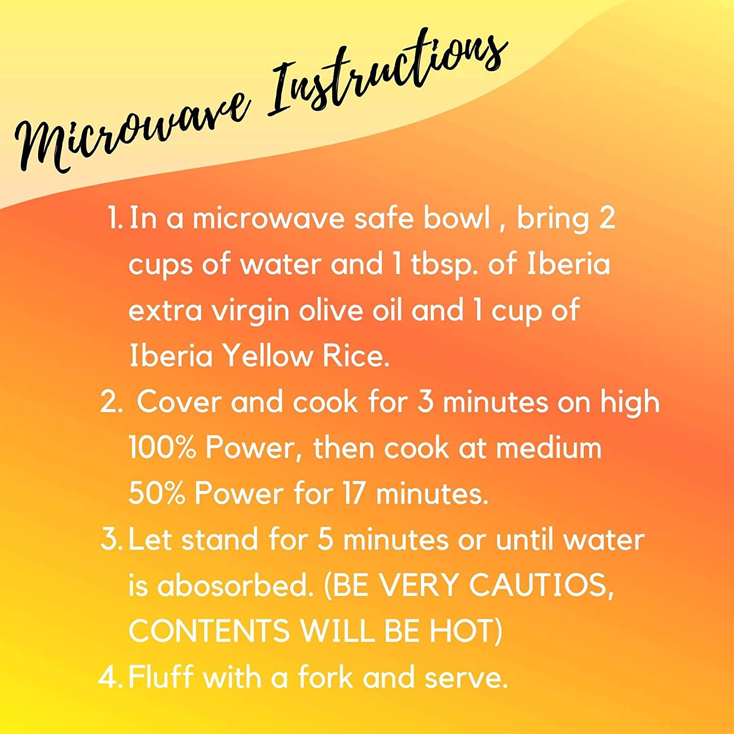 Q: How do you prepare Iberia Yellow Rice?A: Preparing Iberia Yellow Rice is simple and quick. Just follow the package instructions: measure the rice, rinse it if desired, and then cook it with water or broth for about 20 minutes until fluffy. It pairs well with various meats and vegetables.