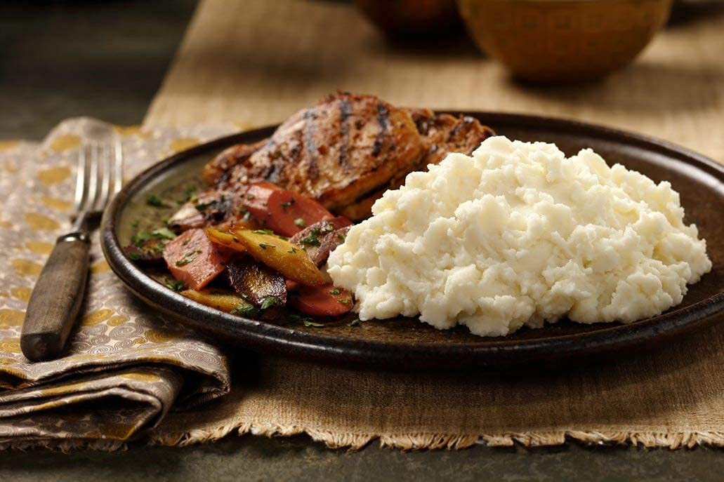 Q: What meals pair well with Idahoan Buttery Homestyle Mashed Potatoes?A: Idahoan Buttery Homestyle Mashed Potatoes are versatile and pair well with a variety of dishes, including meats like roast chicken or beef, as well as vegetables, making them an excellent side for any wholesome family meal.