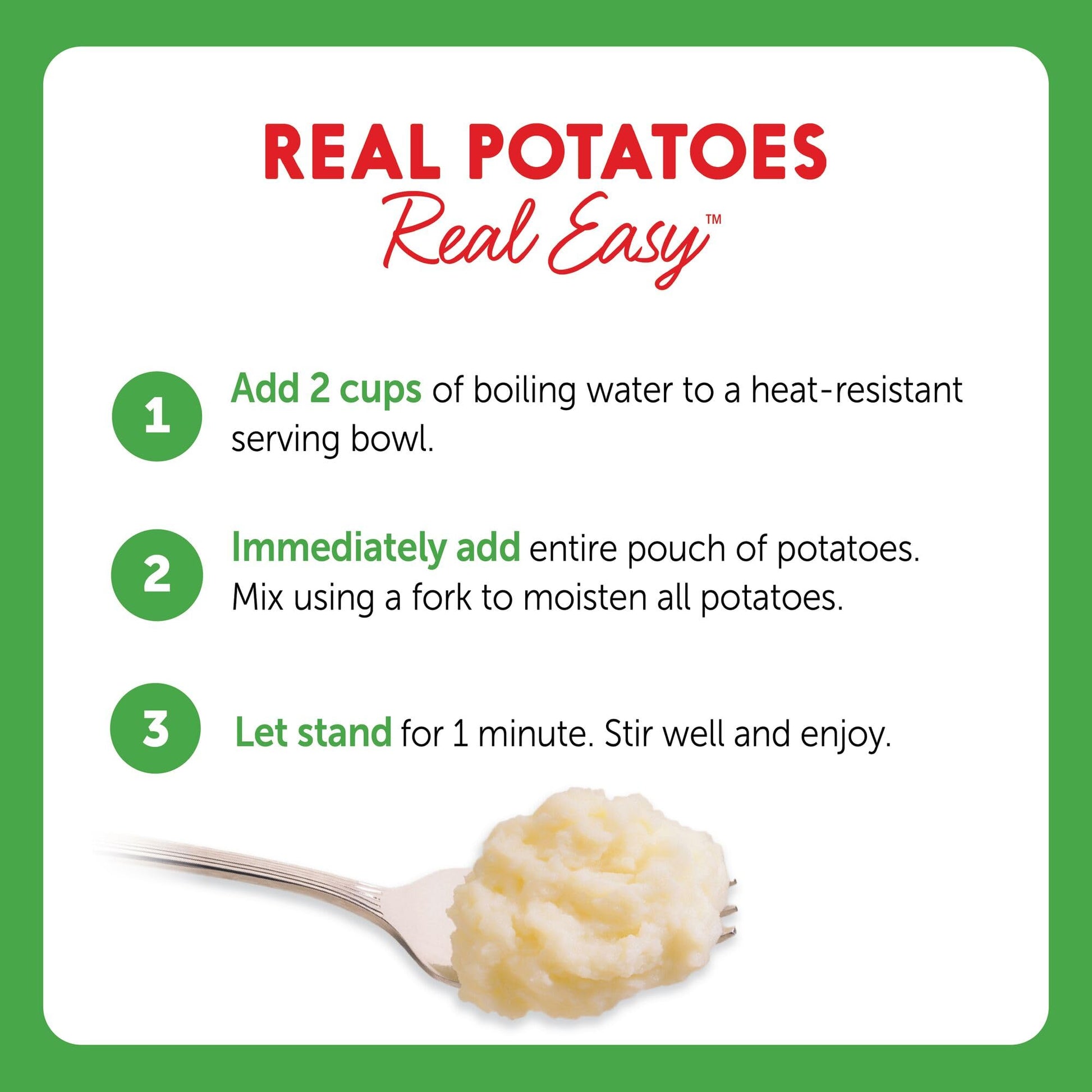 • Q: How do I prepare Idahoan Sour Cream & Chives Mashed Potatoes? A: To prepare Idahoan Sour Cream & Chives Mashed Potatoes, simply heat water on the stovetop or in a microwave, add the entire 4oz pouch of mashed potatoes, stir, and let it sit for a few minutes. In just 4 minutes, you'll have delicious, creamy mashed potatoes ready to serve.