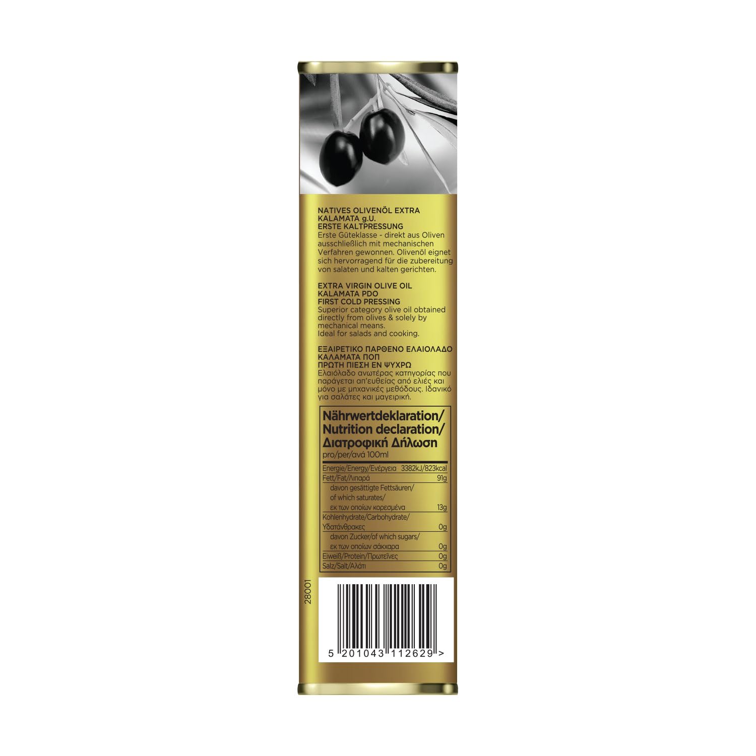 - Q: What is the shelf life of Iliada Kalamata PDO Extra Virgin Olive Oil? A: Iliada Kalamata PDO Extra Virgin Olive Oil maintains a free acidity level of ≤0.5% until the end of its shelf life, which is typically best within 18-24 months from the harvest date. To ensure the best quality, store it in a cool, dark place.