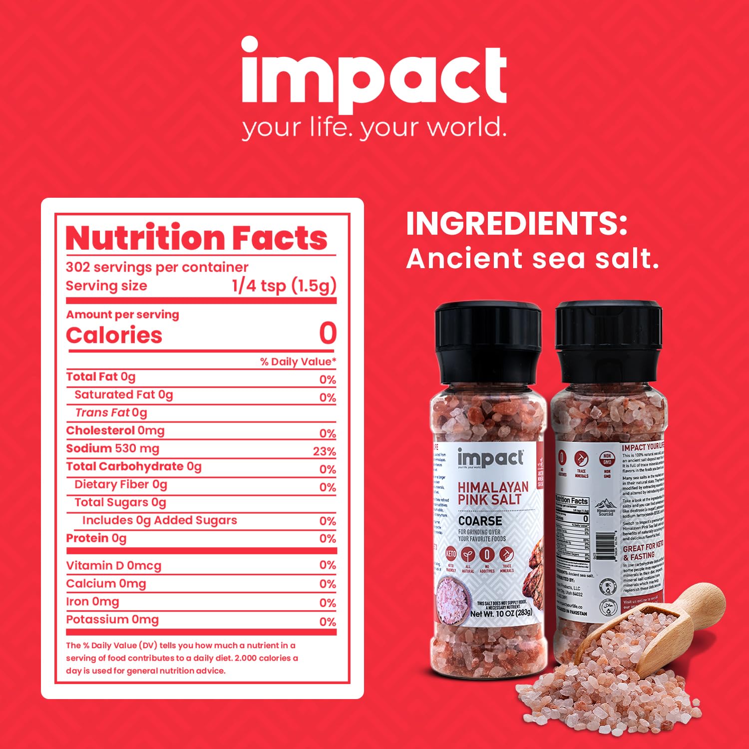View compareImpact - Coarse Himalayan Pink Sea Salt - No Additives Rich in Trace Minerals Non-GMO Gluten-Free Ideal for Low-Carb Fasting Coo