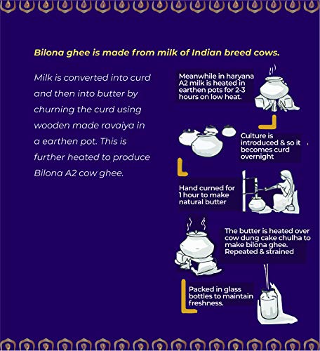 Made From Curd: Our A2 Desi Sahiwal Cow Ghee Is 100% Pure, Preservative-Free, Chemical-Free, And Cruelty-Free. Fresh A2 Milk Obtained From Desi Sahiwal Cows Is Boiled And Set To Curd, The Curd Is Then Slowly Hand Churned Bi-Directionally In A Wooden Churner. The A2 Butter Obtained Through This Process Is Then Separated And Slowly Heated To Obtain Indicow A2 Desi Sahiwal Cow Ghee. This Is Why Our A2 Cow Ghee Has A Grainy Texture, Thicker Consistency, Tempting Aroma, And Great Flavour.