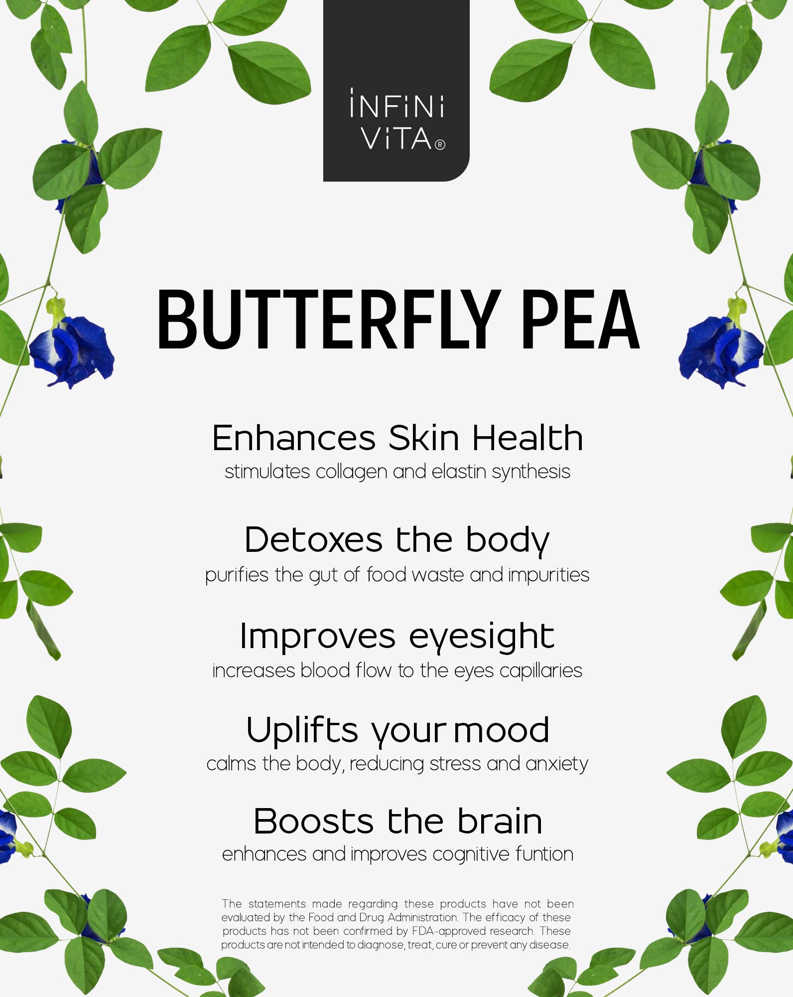 Q: What is the shelf life of Infini Vita Dried Butterfly Pea Flower Tea?A: When stored in a cool, dry place, the shelf life of Infini Vita Dried Butterfly Pea Flower Tea is typically around 12-18 months, allowing you to enjoy its benefits over time.