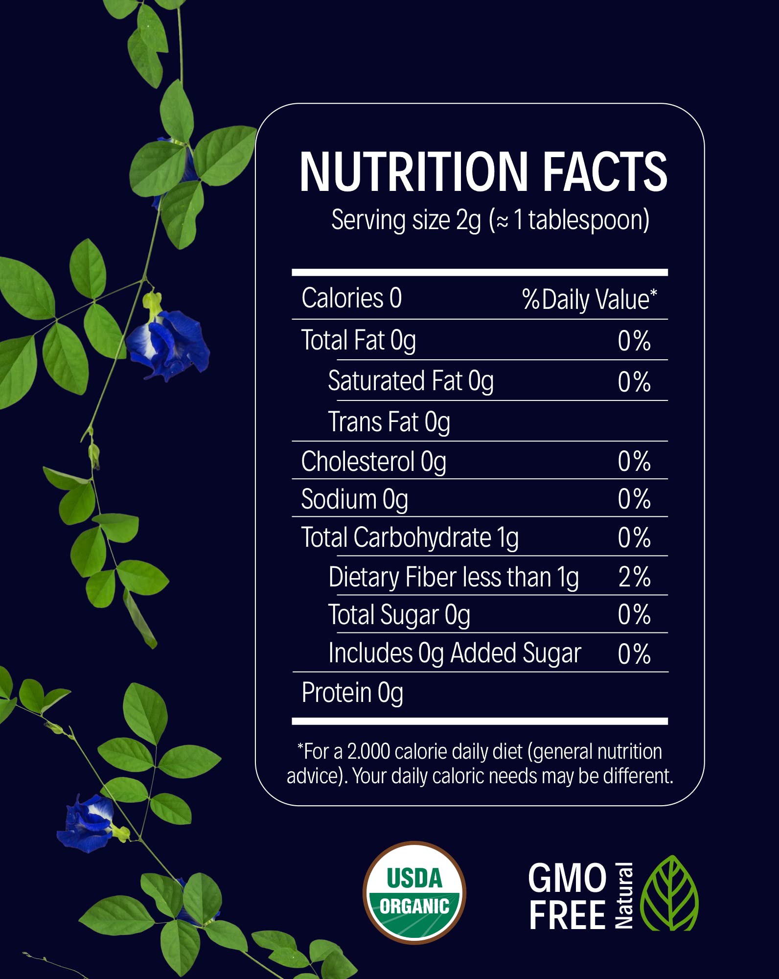 Q: Is Infini Vita Dried Butterfly Pea Flower Tea organic and non-GMO?A: Yes, Infini Vita Dried Butterfly Pea Flower Tea is made from 100% organic ingredients and is certified non-GMO, ensuring a pure and natural tea experience.