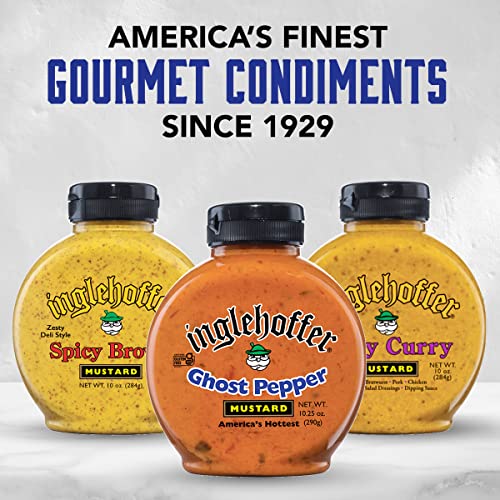 Q: What makes Inglehoffer Ghost Pepper Mustard unique?A: Inglehoffer Ghost Pepper Mustard is crafted with Oregon Sweet Onions and spicy ghost peppers, offering a deliciously piquant flavor that sets it apart from regular mustards. Its unique combination of ingredients delivers both heat and a rich gourmet taste.
