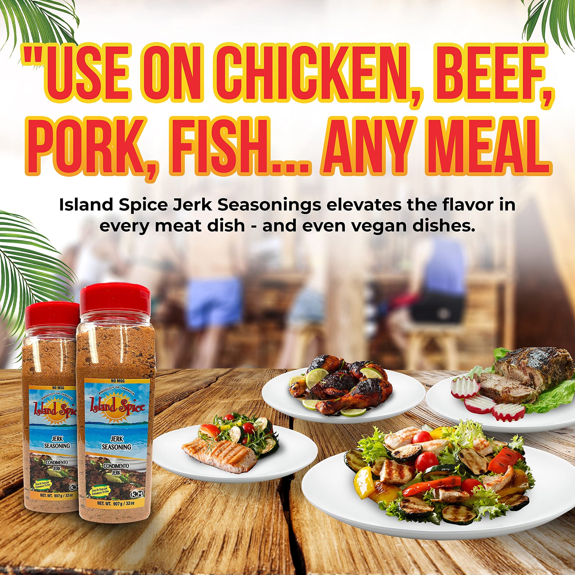Q: What size is the Island Spice Jerk Seasoning bottle?A: The Island Spice Jerk Seasoning comes in a generous 32-ounce bottle, providing great value for creating multiple delicious meals.
