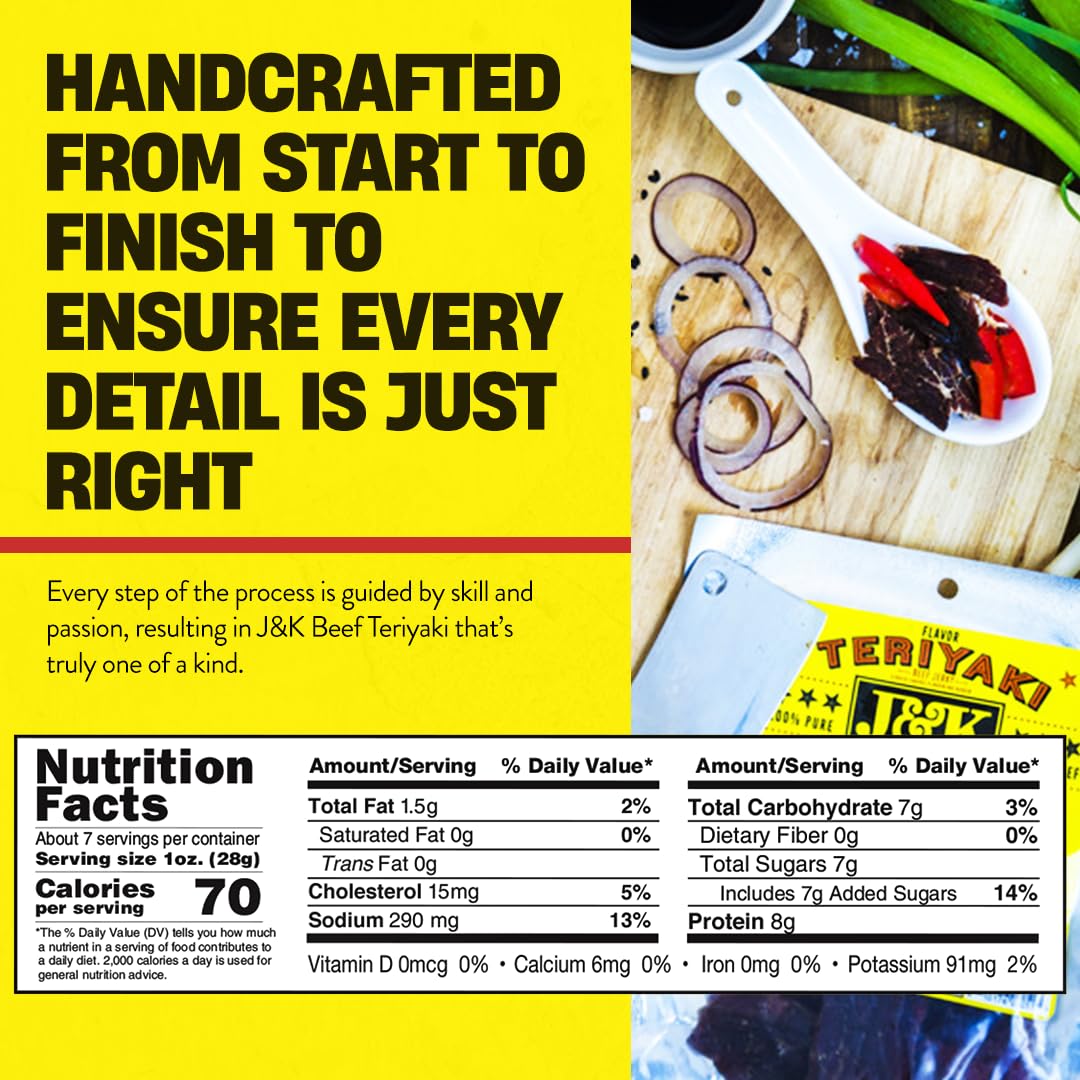 Premium Beef: Made From High-Quality Beef, J&K Beef Jerky Delivers A Tender And Flavorful Snacking Experience That'S Perfect For Any Occasion. Authentic American Made: Handcrafted In The Usa, J&K Beef Jerky Is Made With Traditional American Flavors And Spices For A Unique And Delicious Snack. Slab Jerky: Unlike Traditional Beef Jerky, J&K Beef Jerky Is Made Using Large Slabs Of Beef, Resulting In A Meatier And More Satisfying Snack. Great Source Of Protein: J&K Beef Jerky Is Packed With Protein, Making It A Great Option For A Post-Workout Snack Or A Mid-Day Energy Boost Easy Snack: Whether You'Re Headed Out On A Road Trip Or Just Need A Snack At Work, J&K Beef Jerky Doesn'T Require Refrigeration, Making It The Perfect On-The-Go Snack.
