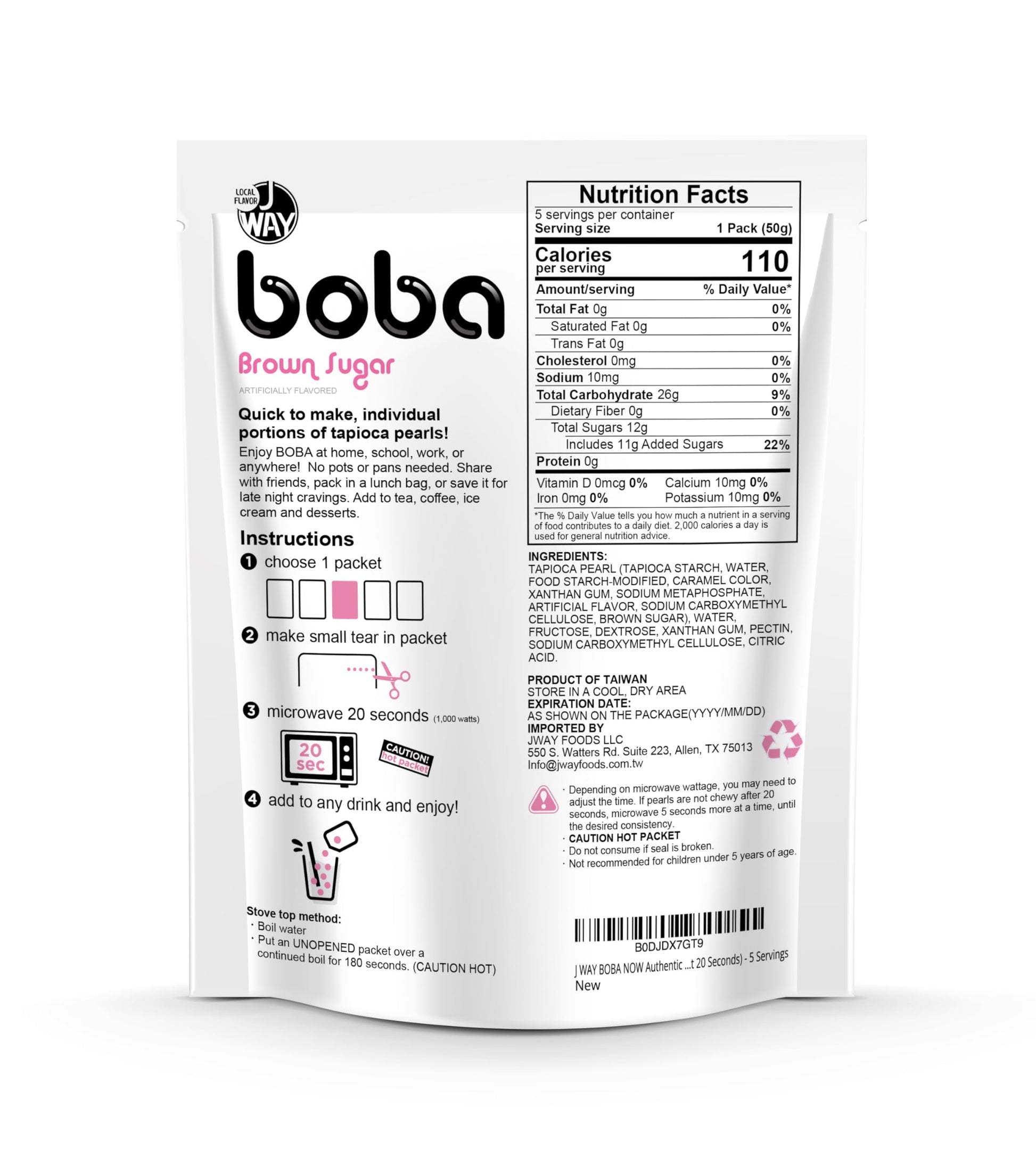 Q: How do I prepare the J WAY BOBA Authentic Instant Tapioca Boba Pearls?A: The J WAY BOBA Authentic Instant Tapioca Boba Pearls are incredibly easy to prepare. Simply microwave the sealed pouch for about 20 seconds or place it in boiling water for a quick, delicious bubble tea experience. This convenience makes it perfect for on-the-go enjoyment.