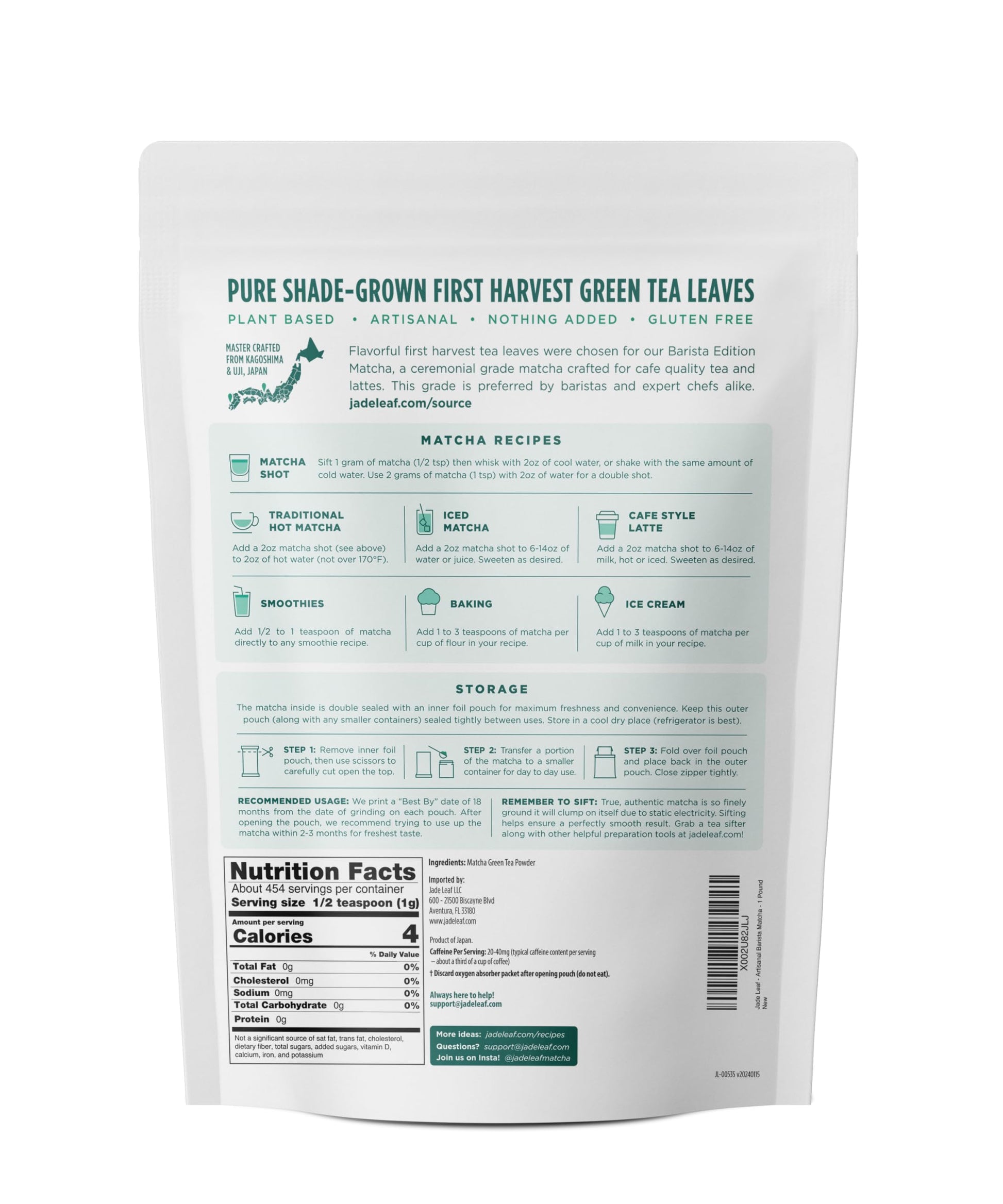 - Q: Can I use Jade Leaf Matcha in recipes other than drinks? A: Absolutely! Jade Leaf Matcha is versatile and can be used in various recipes, including smoothies, baked goods, and desserts. Its rich flavor enhances both sweet and savory dishes, making it a favorite among chefs and home cooks alike.