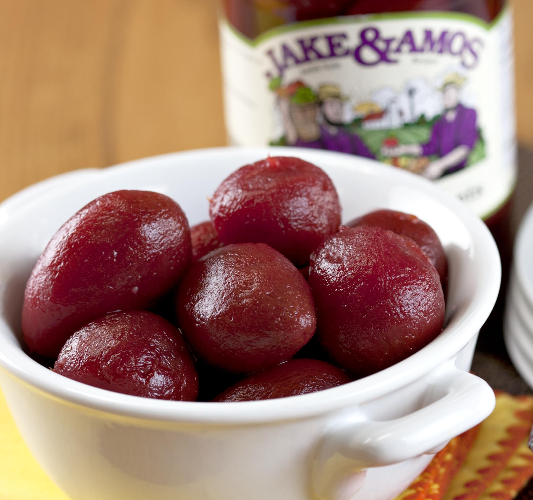 Jake and Amos pickled sweet tiny baby beets have a flavor unlike any other! These beets are flavored with a touch of cinnamon and spices and make a delicious healthy snack or side dish. Use the juice to make a batch of delicious pickled red beet eggs. 2 / 16 Oz. Jars