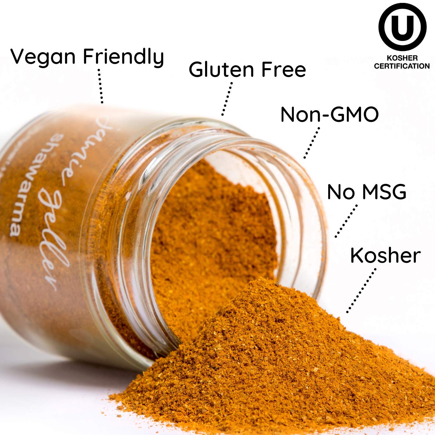 - Q: Is the Shawarma seasoning suitable for vegetarian or vegan diets? A: Yes, Jamie Geller Shawarma Seasoning is vegan-friendly, making it suitable for both vegetarian and vegan diets.