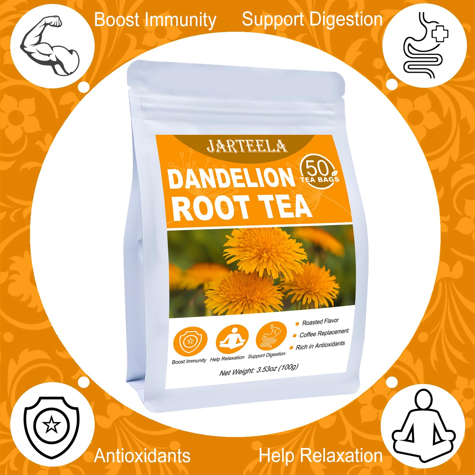 - Q: What is the packaging size of Jarteela Dandelion Tea? A: Jarteela Roasted Dandelion Root Tea is available in a convenient pack containing fifty tea bags, ensuring you have plenty for regular use.