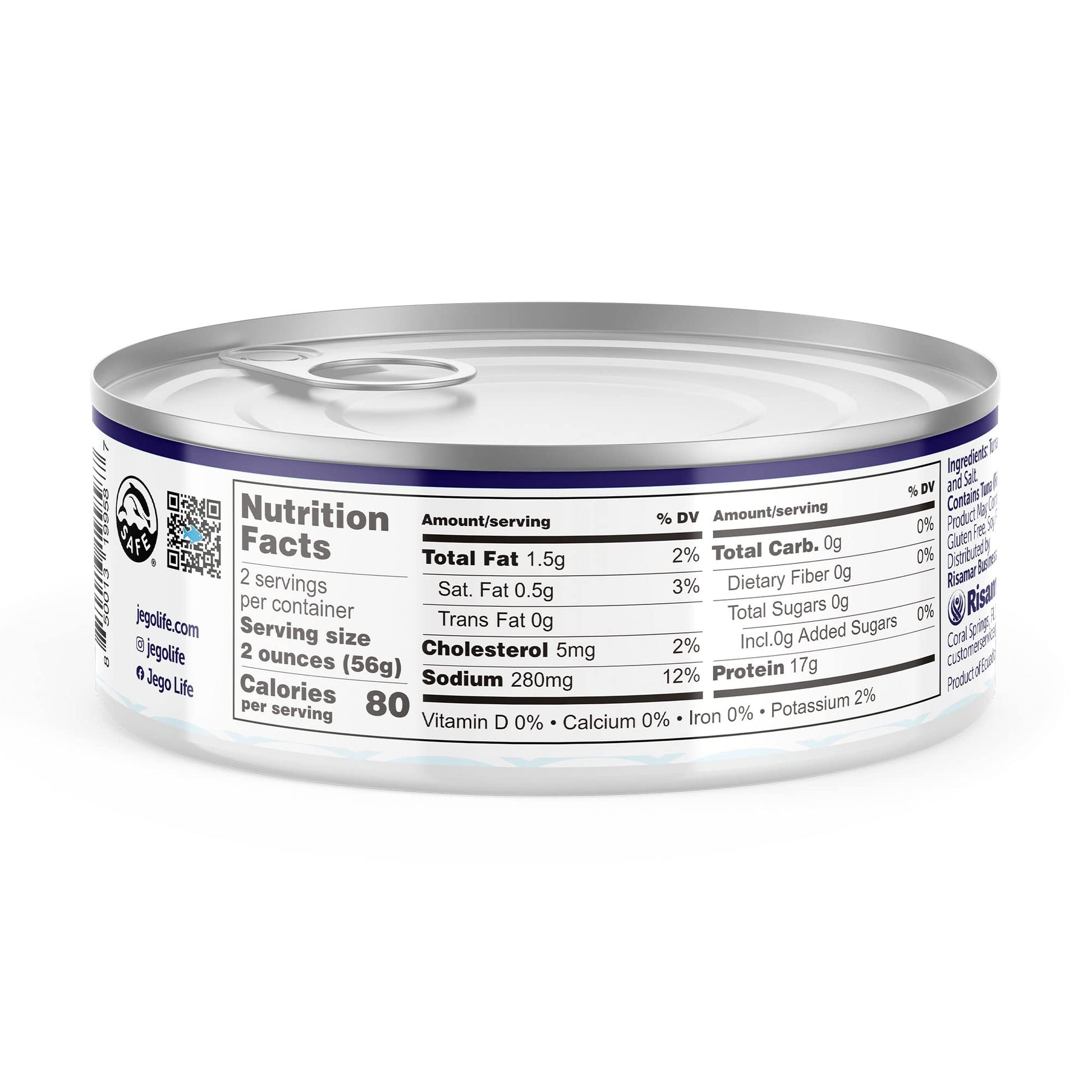 Q: What are the main ingredients in Jego Solid Tuna in Water?A: Jego Solid Tuna in Water is made with simple and natural ingredients: tuna, water, and salt. This ensures that you are enjoying a high-quality product without any unnecessary additives.