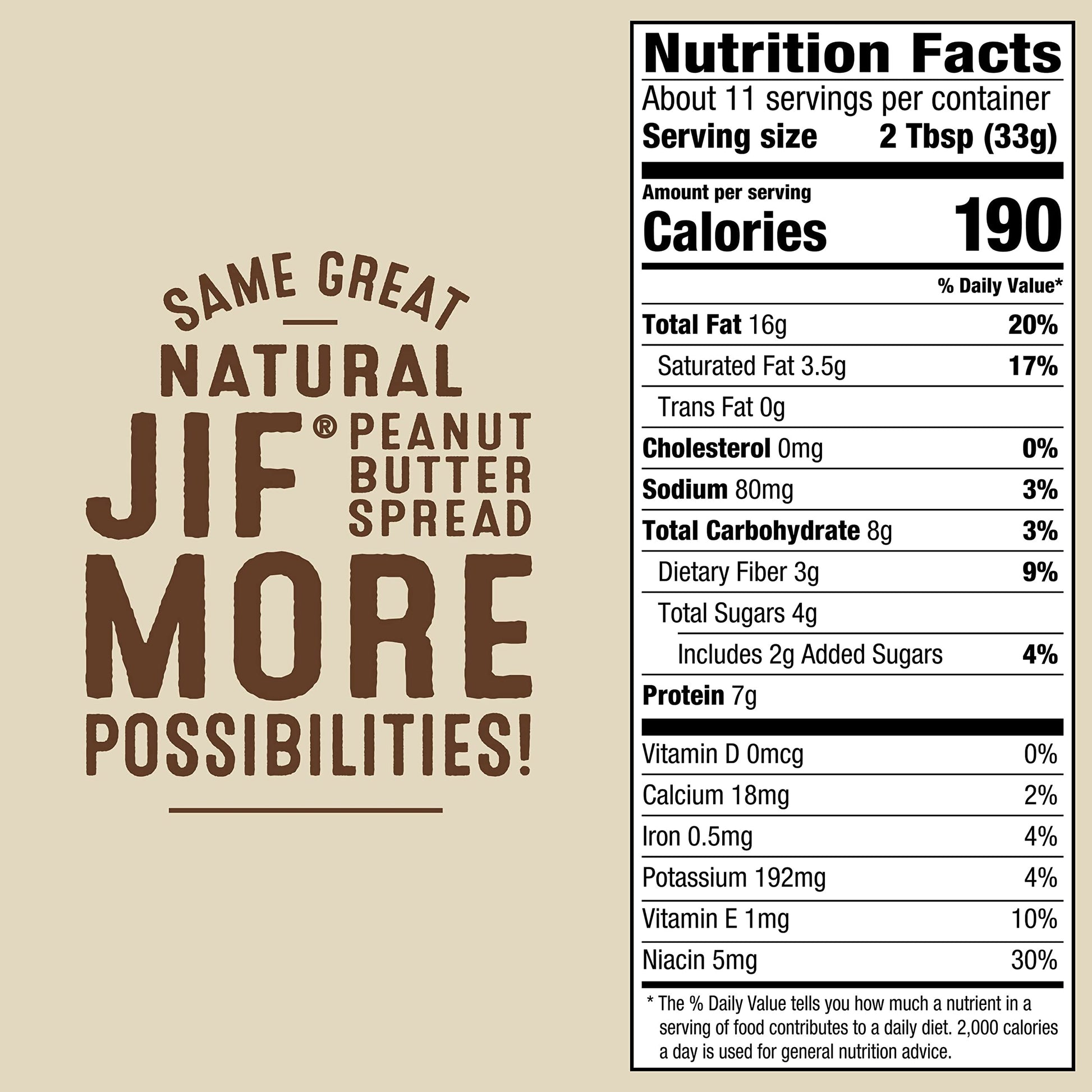 Key Features:- Contains one (1) 13-ounce pouch of Jif Natural Squeeze Creamy Peanut Butter Spread.