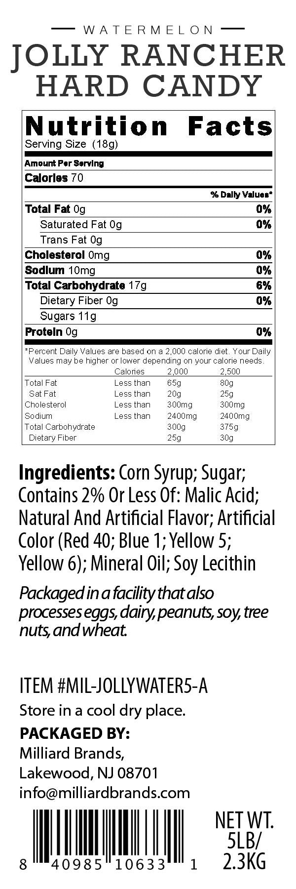 Q: What is the size of the Jolly Rancher Watermelon Hard Candy package?A: The Jolly Rancher Watermelon Hard Candy comes in a 5 Pound (Pack of 1), making it perfect for sharing or stocking up.