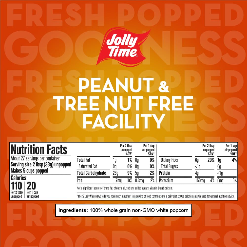 - Q: Can I use Jolly Time popcorn kernels in a microwave? A: Jolly Time popcorn kernels are best prepared using stovetop methods or an air popper. They are not designed for microwave use without a specific microwave-safe popping method.